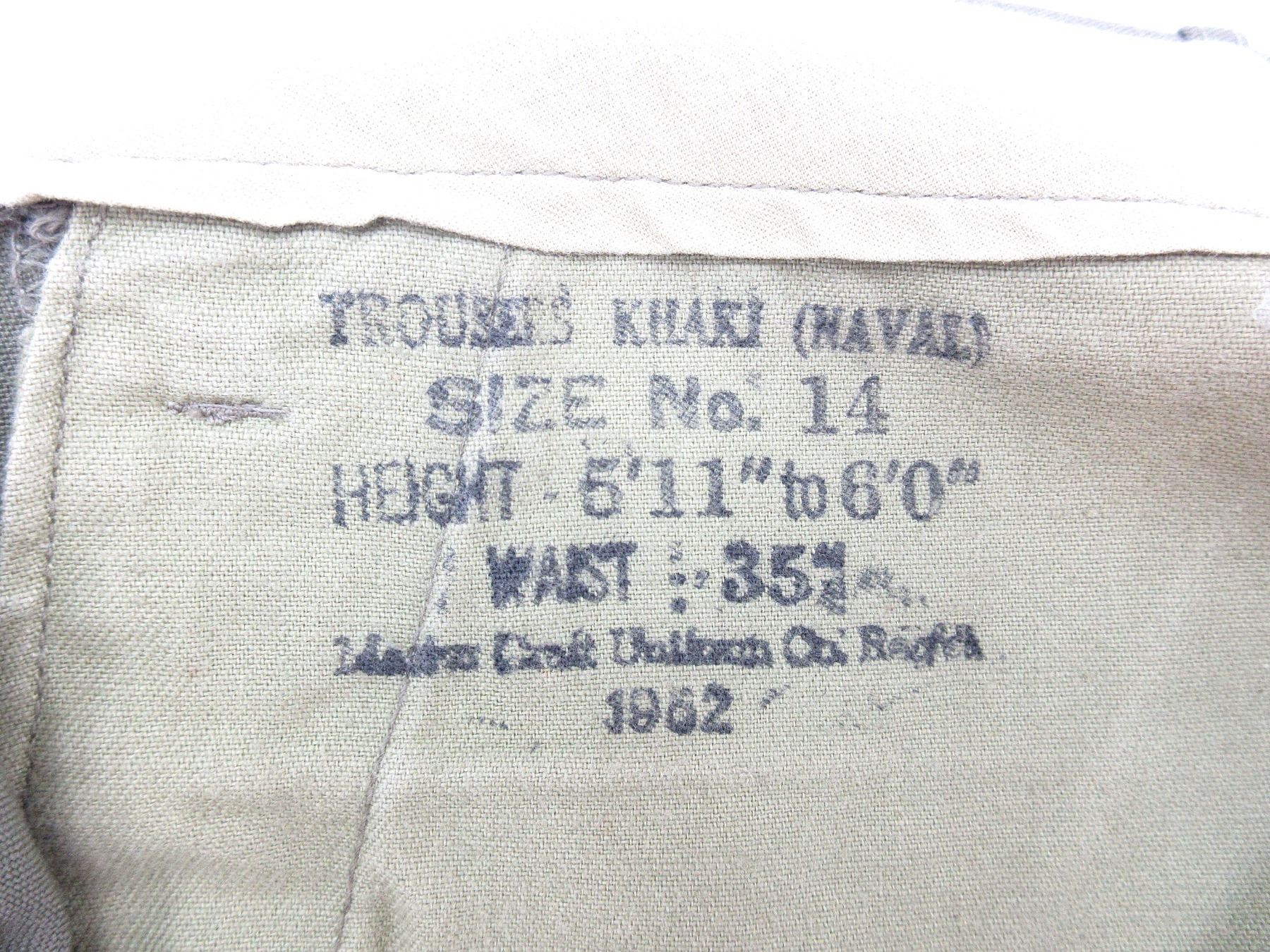 1950'S RCN KHAKI SUMMER TUNIC AND PANTS LOT