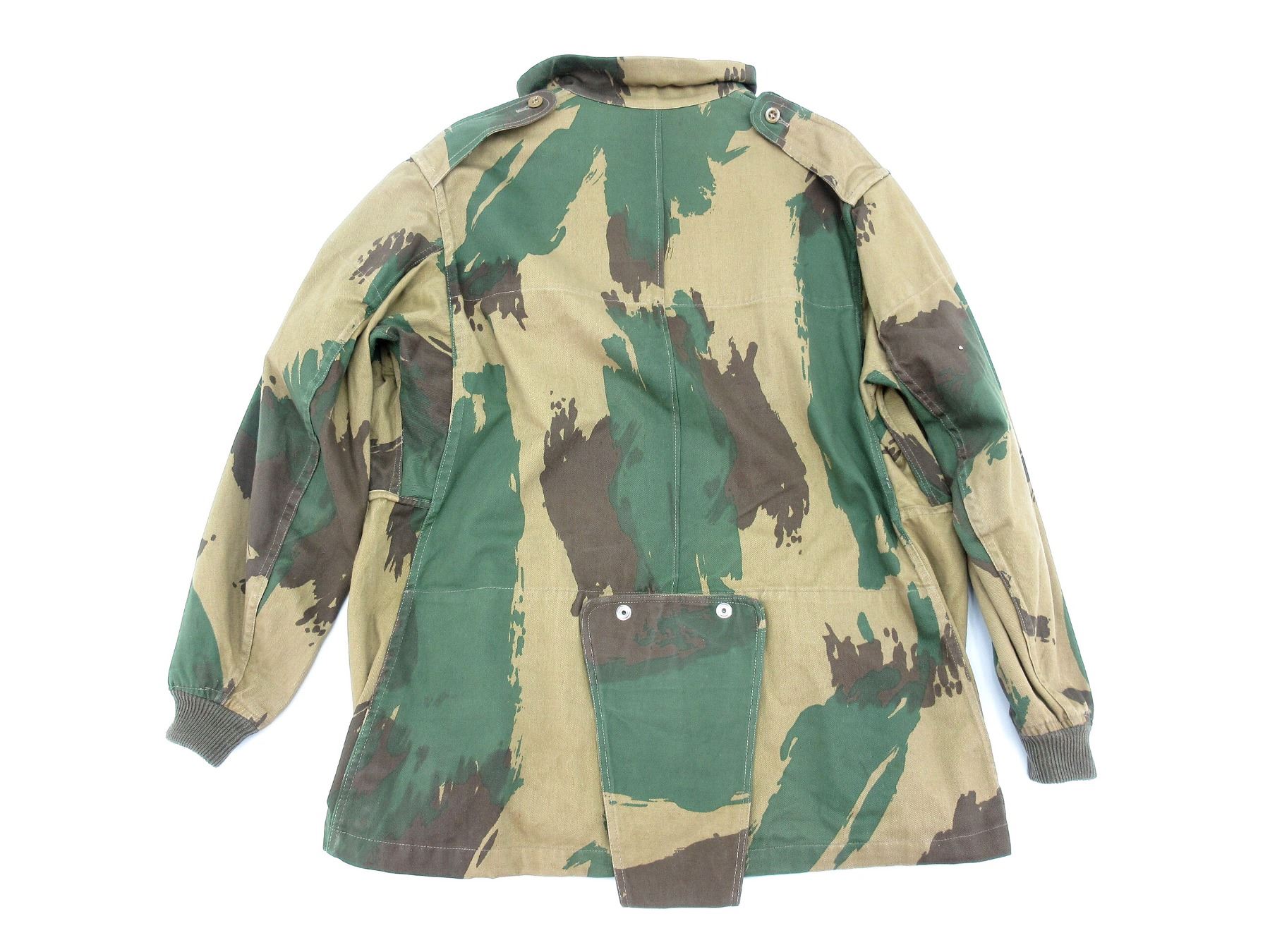 (1) CAMO SMOCK, MARKED: "SMOCK DENISON, 1959 PATTERN, SIZE 5, HEIGHT 5-9, TO 5'-11", BREAST 37-39, J MANDLEBERG & CO LTD, 1962" & BROAD ARROW, CONSIGNOR STATES: "UNISSUED, ZIPPER REPLACED AS ORIGINAL WAS DEFECTIVE", ZIPPERED-FRONT (WORKS). SEE PHOTOS.
