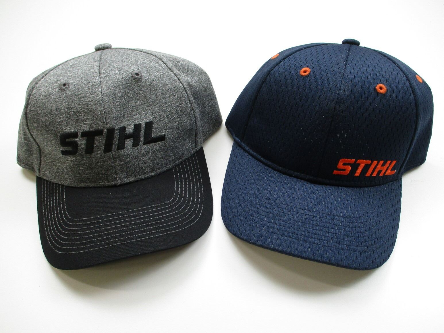 2 STIHL HATS, 1 GREY, 1 BLUE FOR ANY MOOD , RETAIL VALUE , GENEROUSLY DONATED BY EAGLES NEST POWER