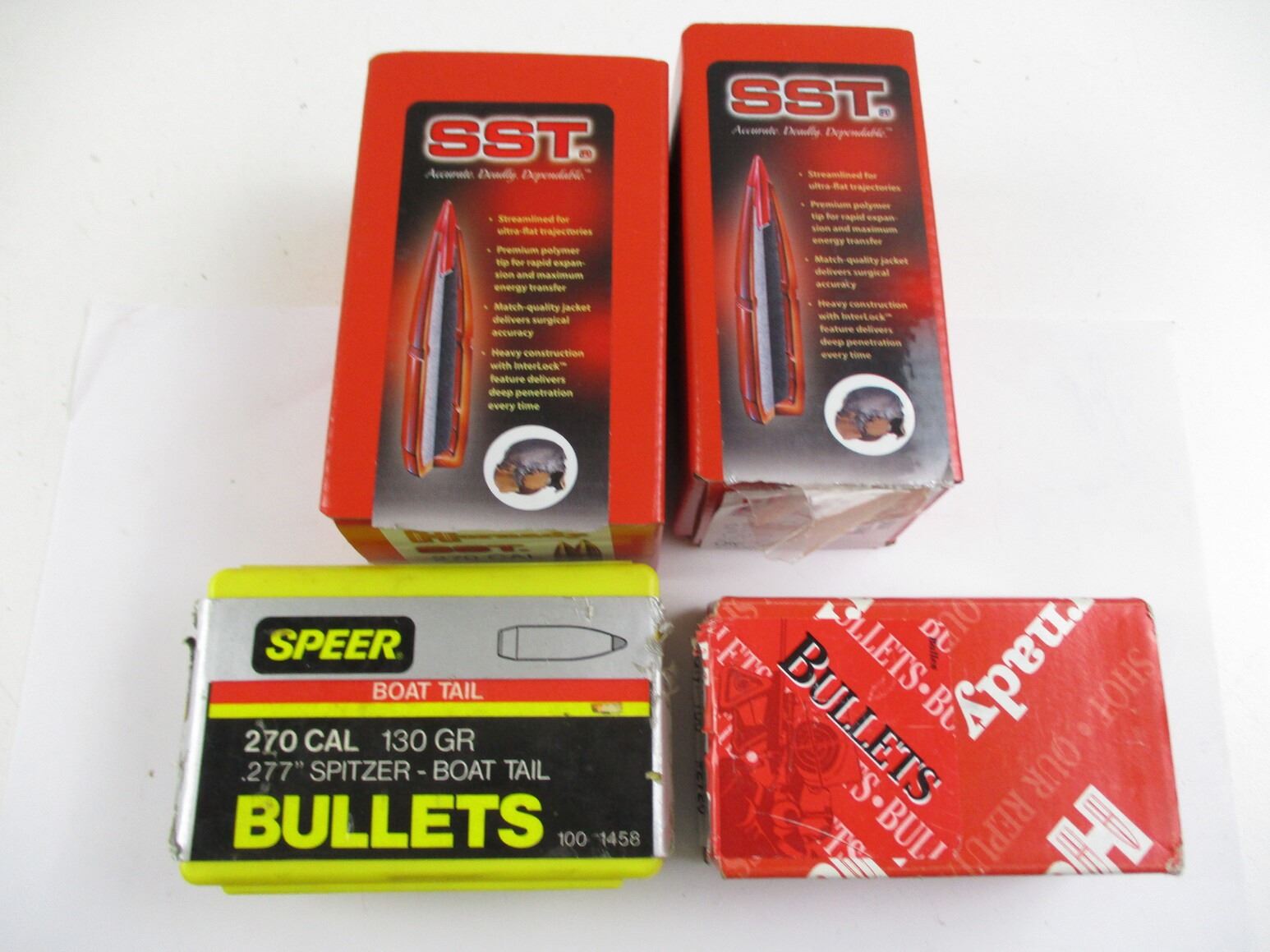 270 CAL .277" BULLET LOT , HORNADY, SPEER. INCLUDES 110 GR HP, 130 GR SST, 130 GR SPIZER BT, 150 GR SST. APPROXIMATELY 5.4 LBS.