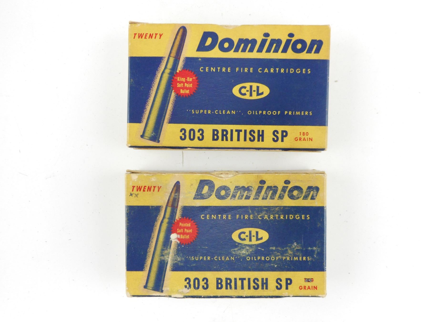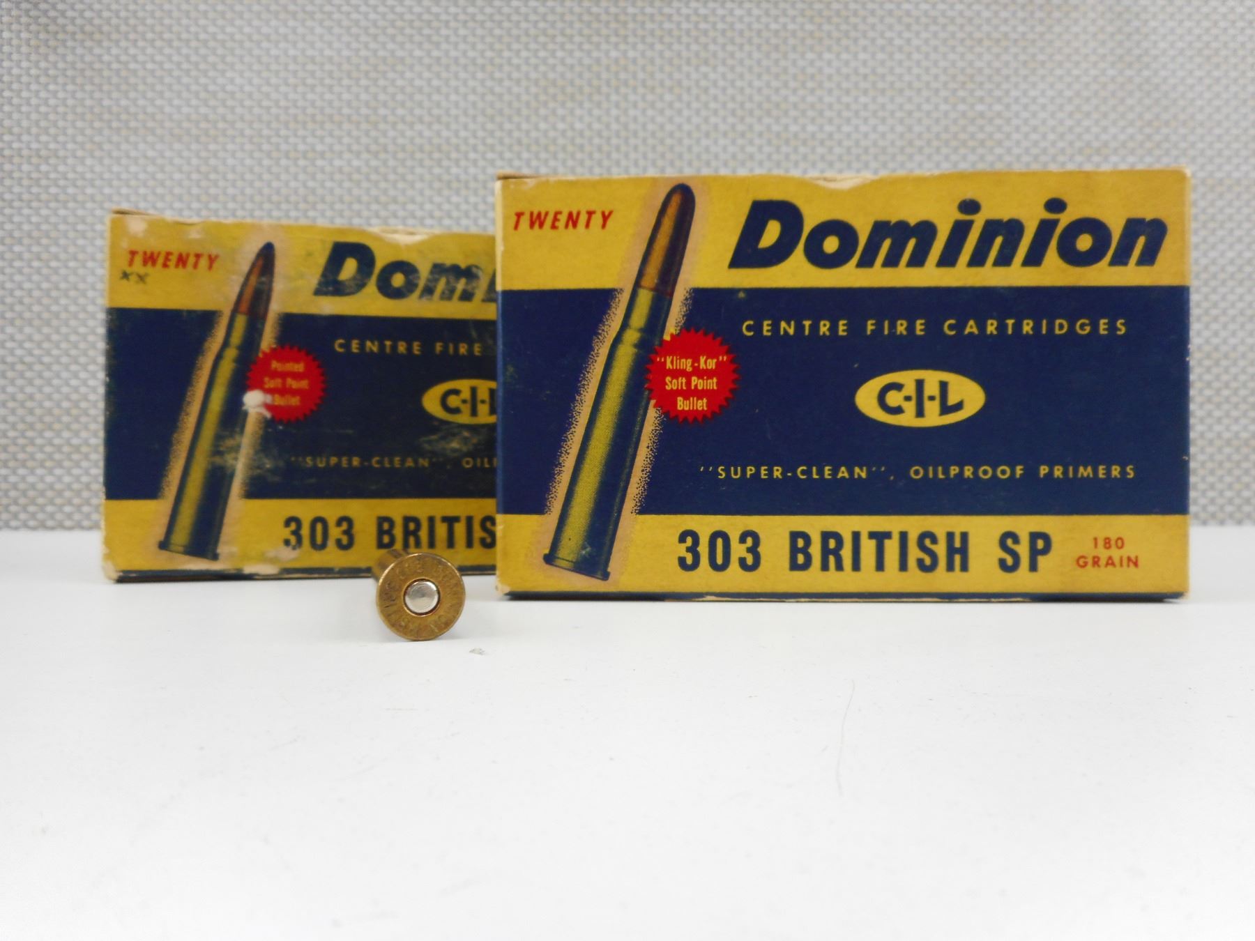 .303 BRITISH BRASS CASES , 40 RNDS, IN VINTAGE DOMINION BOXES