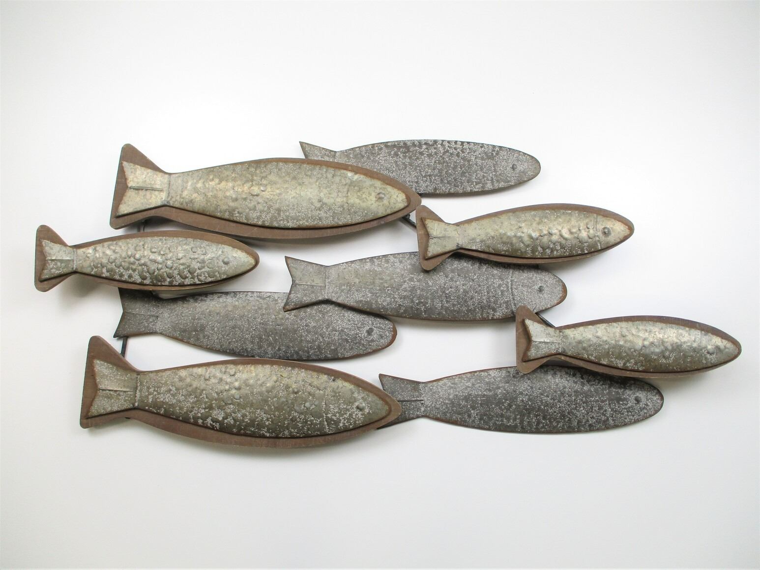 3D FISH WOOD & METAL WALL ART, THIS ARTISTIC SCHOOL OF FISH OFFERS A GREAT TEXTURE FOR YOUR SPACE USING METAL AND WOOD , RETAIL VALUE $230, GENEROUSLY DONATED BY LEONS BANCROFT