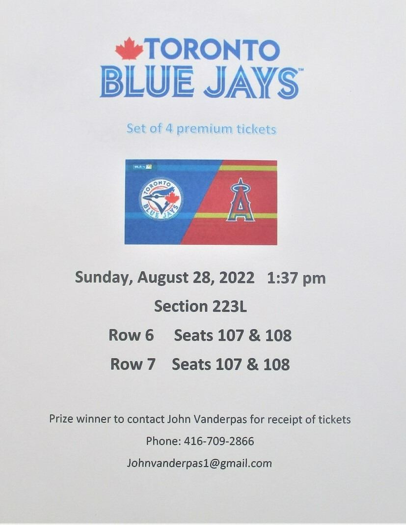 4 TICKETS BLUE JAYS GAME, ENJOY AN OUTTING FOR 4 ON THE 223L OF THE AUGUST GAME , RETAIL VALUE $480, GENEROUSLY DONATED BY NELSON AGGREGATES