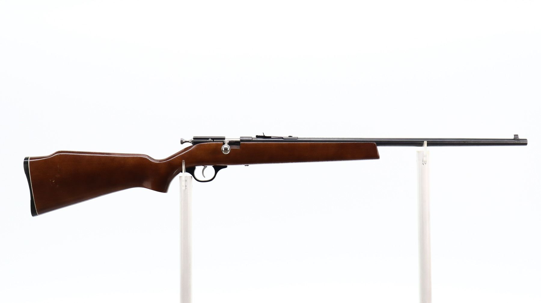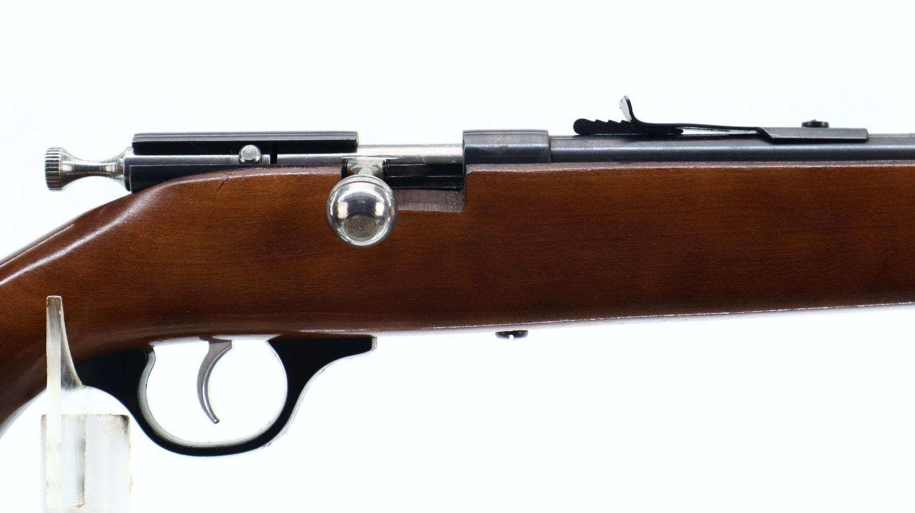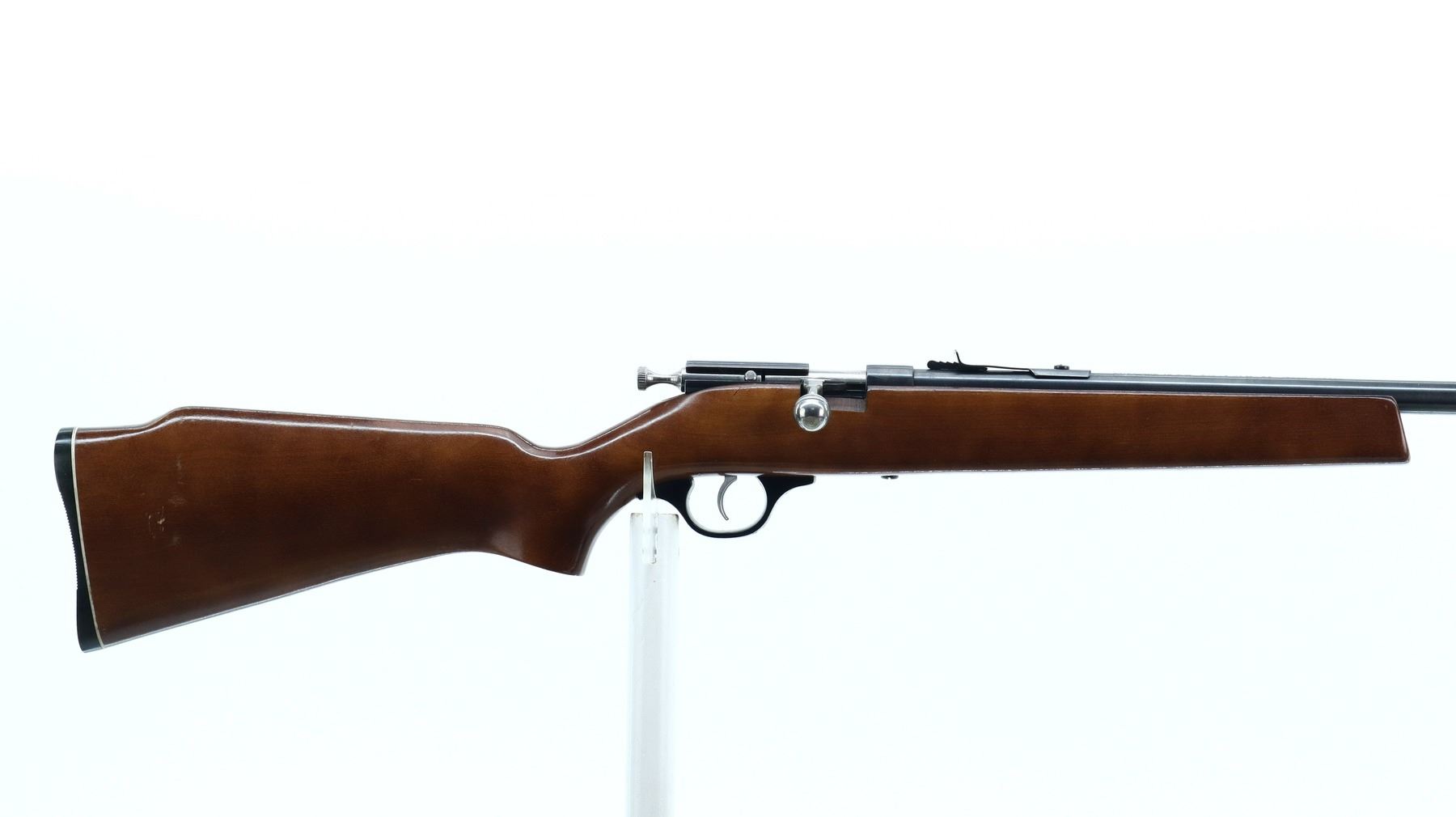 7/10, COOEY, MODEL: 39, CALIBER: 22 LR, BORE IS VERY GOOD. BLADE FRONT SIGHT, ADJUSTABLE U NOTCHED REAR SIGHT, BLUED FINISH, SILVER BOLT. ONE PIECE SMOOTH WOOD STOCK, PISTOL GRIP, GROOVED BLACK POLYMER BUTT PLATE. METAL FINISH SHOWS SCRATCHES, HANDLING MARKS AND WEAR. STOCK SHOWS DINGS, SCRATCHES AND WEAR., ACTION: BOLT ACTION RIFLE, BARREL LENGTH: 22", SERIAL # NA, CONDITION: 7/10, CLASS: CANADIAN NON RESTRICTED CLASS, PAL REQUIRED