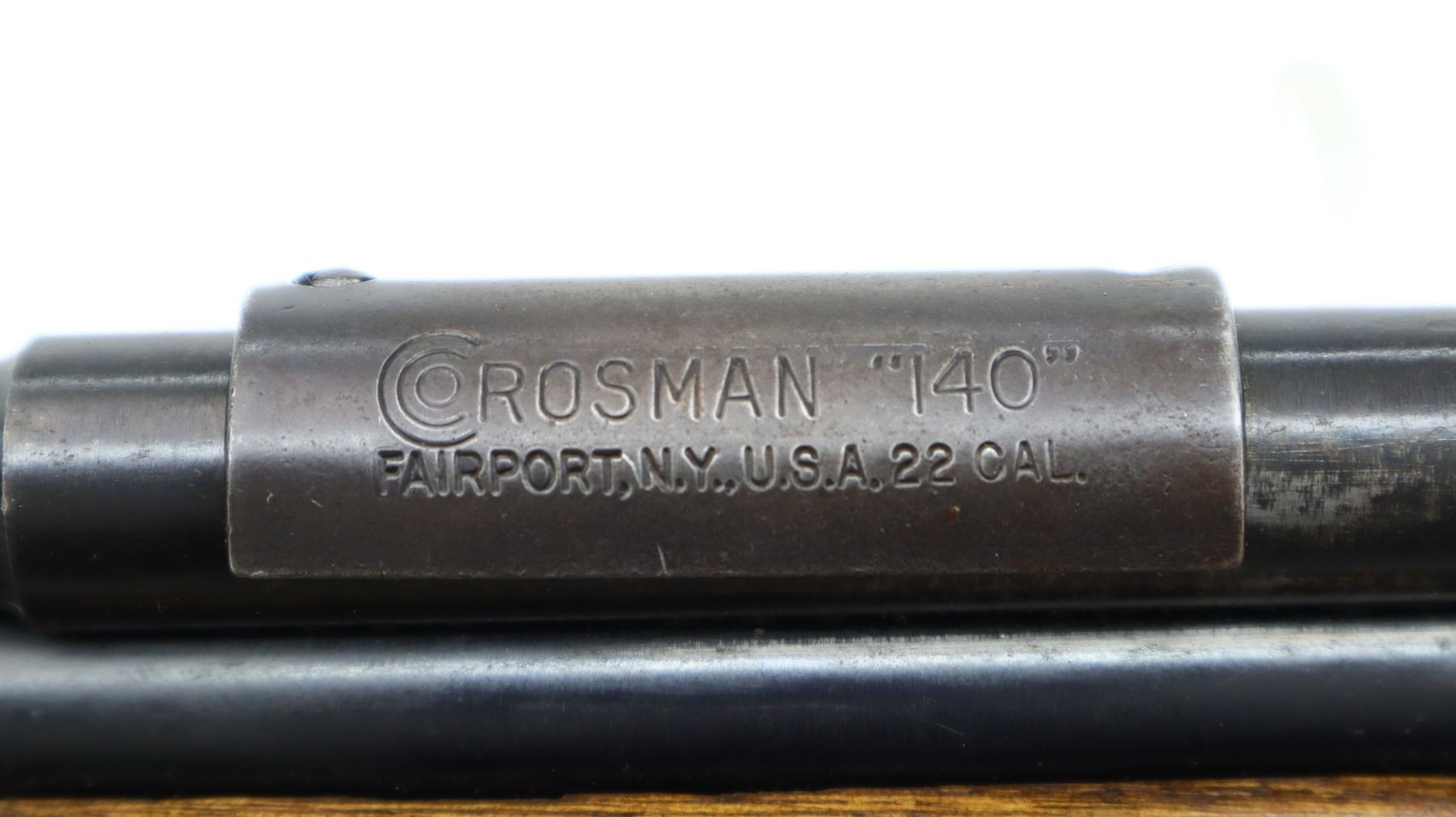 7/10 , CROSSMAN , MODEL: 140 , , CALIBER: 22 PELLET , 7/10 , CROSSMAN , MODEL: 140 , , CALIBER: 22 PELLET , BORE IS VERY GOOD. BLADE FRONT SIGHT, ADJUSTABLE U NOTCHED REAR SIGHT. TWO PIECE SMOOTH WOOD STOCKS, PISTOL GRIP, SMOOTH BUTT, ALLOY TRIGGER GUARD. METAL FINISH SHOWS SOME SCRATCHES, HANDLING MARKS AND WEAR. STOCKS SHOW SOME DINGS, SCRATCHES AND WEAR. , ACTION: PUMP AIR RIFLE. , BARREL LENGTH: 19.5" , SERIAL: NA , CONDITION: 7/10 , CLASS: CANADIAN NON RESTRICTED CLASS , ACTION: PUMP AIR RIFLE. , BARREL LENGTH: 19.5" , SERIAL: NA , CONDITION: 7/10 , CLASS: CANADIAN NON RESTRICTED CLASS
