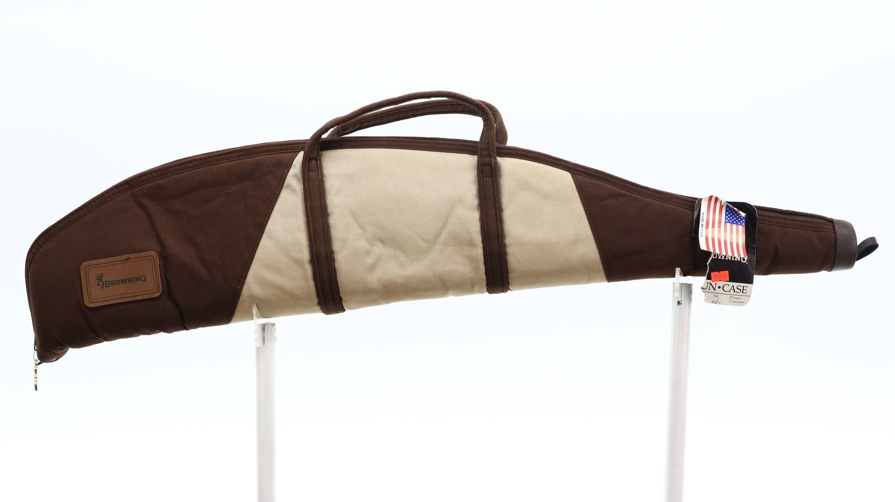 9+/10, BROWNING, MODEL: BAR 22, CALIBER:22 LR, COMES WITH BROWNING SOFT CASE, BORE IS EXCELLENT. BLADE FRONT SIGHT WITH RAMP, ADJUSTABLE FOLDING U NOTCHED REAR SIGHT, POLISHED BLUE FINISH, RECEIVER GROOVED FOR SCOPE MOUNT. TWO PIECE WOOD STOCKS, CHECKERED FOREARM AND PISTOL GRIP, TEXTURED BLACK POLYMER BROWNING BUTT PLATE, FULL LENGTH MAG TUBE. METAL FINISH SHOWS SHOW SCRATCHES AND HANDLING MARKS. STOCKS SHOW SOME MARKS AND SCRATCHES. , ACTION: SEMI AUTOMATIC RIFLE, BARREL LENGTH: 20", SERIAL # 12073RP166, CONDITION: 9+/10, CLASS: CANADIAN NON RESTRICTED