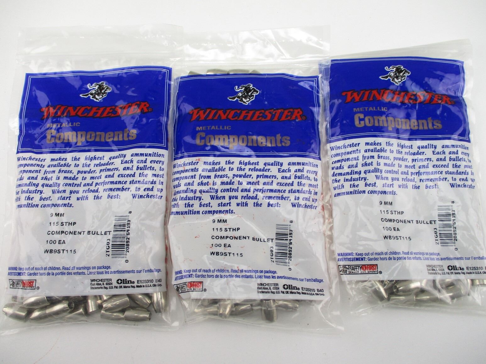 9MM 115 STHP BULLETS , (3) SEALED PACKAGES, APPROXIMATELY 4.99 LBS.