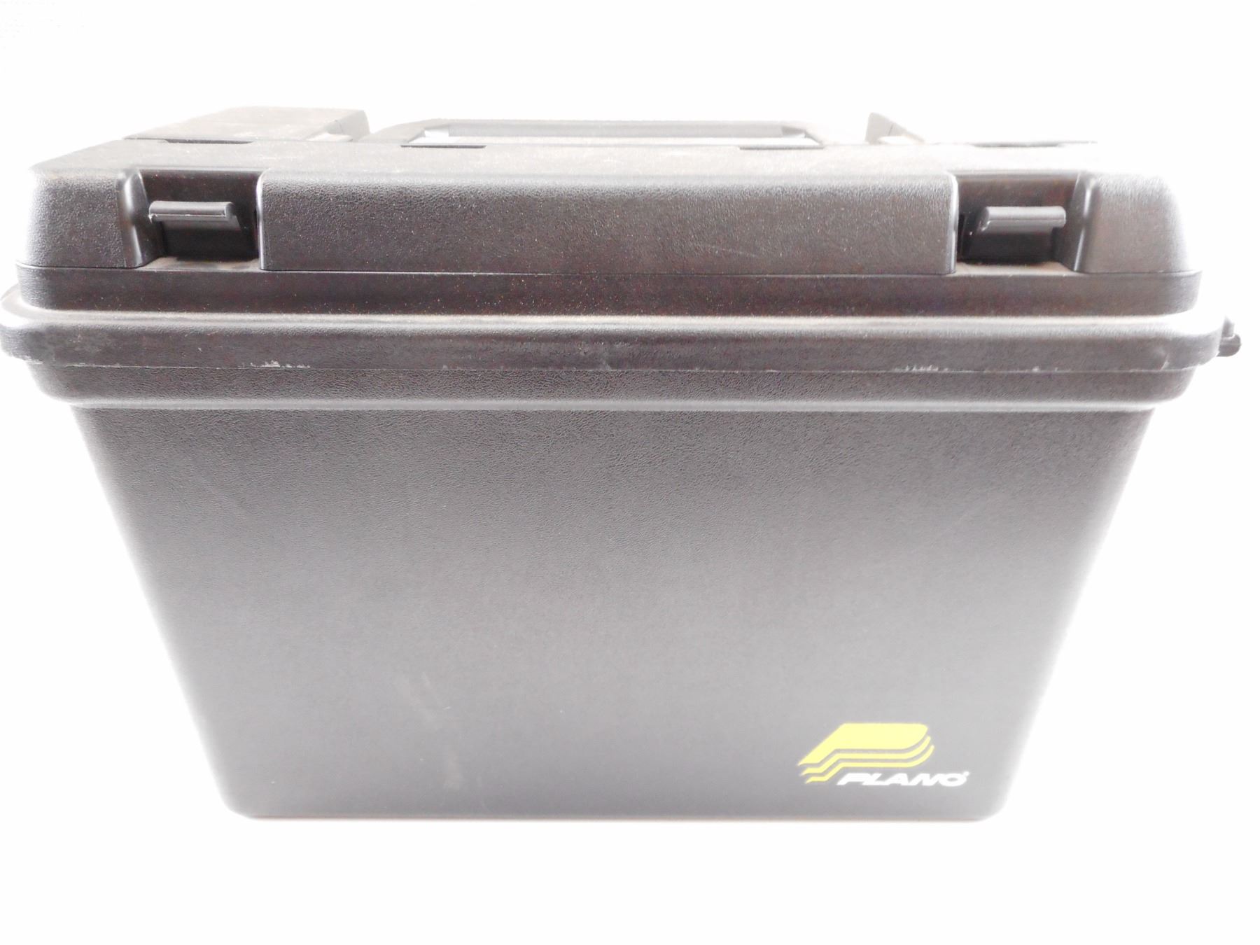 9MM LUGER BRASS CASES, IN PLANO PLASTIC AMMO BOX , 8.0 LBS 9MM LUGER BRASS CASES, APPROX. SIZE OF AMMO BOX 15" X 9" X 10"