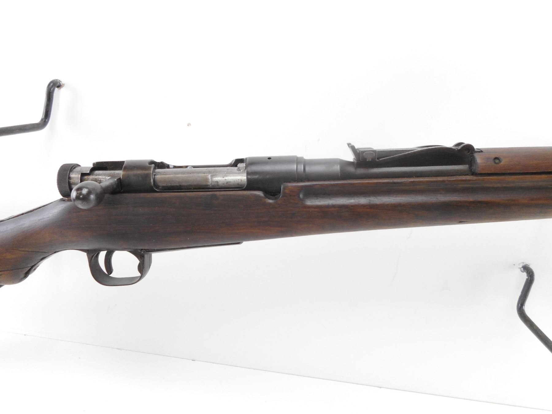 ARISAKA , MODEL: SIAMESE , CALIBER: 8 X 50R , BORE IS GOOD. RETAINS FULL MILITARY CONFIGURATION. SMALL CRACK IN THE FOREND WOOD. LARGE CRACK AND CHIPS AT THE BUTT. POORLY FITTING BUTT PLATE. OLIVE BOLT KNOB. SHOWS EXTENSIVE HANDLING MARKS. SOME CHIPS IN THE WRIST. , ACTION: BOLT ACTION RIFLE , BARREL LENGTH: 30" , STOCK # NR12778 , SERIAL # N/A , CONDITION: 4/10 , CLASS: CANADIAN CLASS NON RESTRICTED