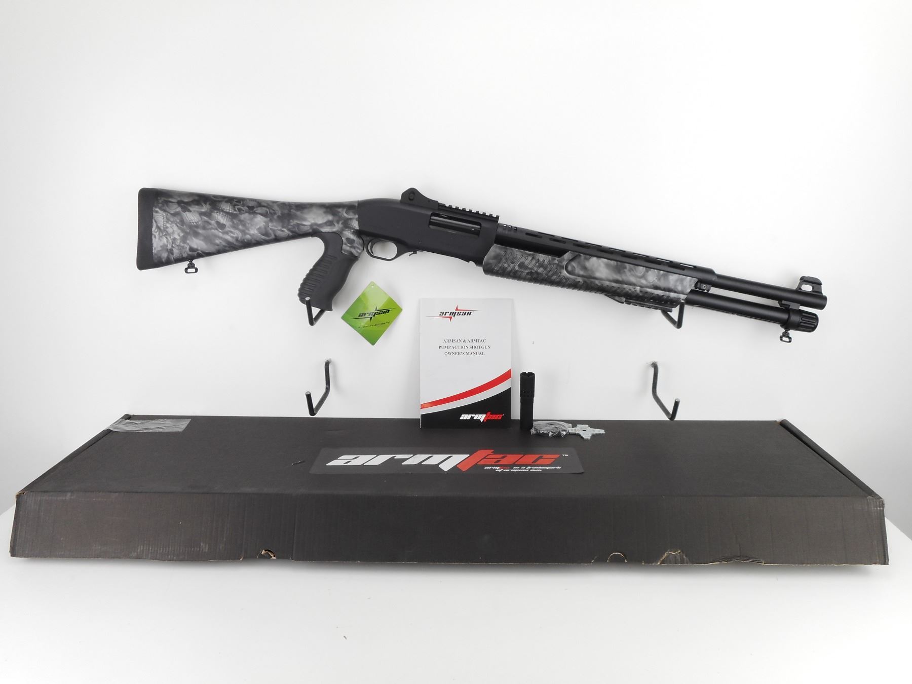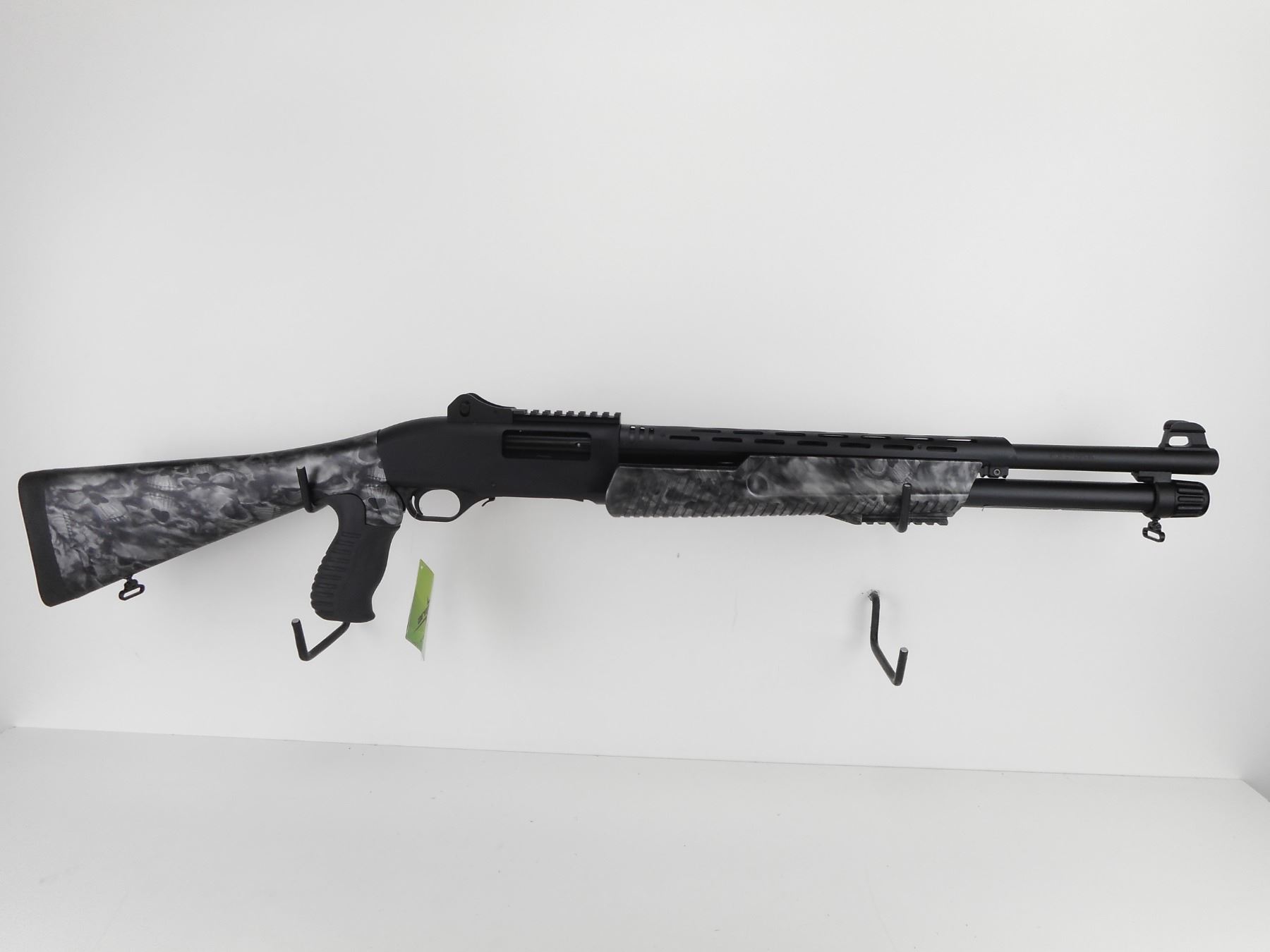 ARMSAN , MODEL: RS-X2 SKULL , CALIBER: 12 GA X 3" , COMES WITH BOX, AND TWO CHOKES. BORE IS EXCELLENT. APPEARS AS NEW MAY HAVE BEEN TEST FIRED AT THE FACTORY. FIBER OPTIC FRONT AND PEEP REAR SIGHT. ACCESSORY RAIL. HEAT SHIELD ON THE BARREL. FULL LENGTH MAGAZINE TUBE. SKULL CAMO FINISH STOCKS WITH FULL PISTOL GRIP. RUBBER RECOIL PAD. SLING SWIVEL LOOPS. SHOWS VIRTUALLY NO HANDLING MARKS. , ACTION: PUMP ACTION SHOTGUN , BARREL LENGTH: 20" , STOCK # NR12629 , SERIAL # 14M8467 , CONDITION: AS NEW IN BOX , CLASS: CANADIAN CLASS NON RESTRICTED