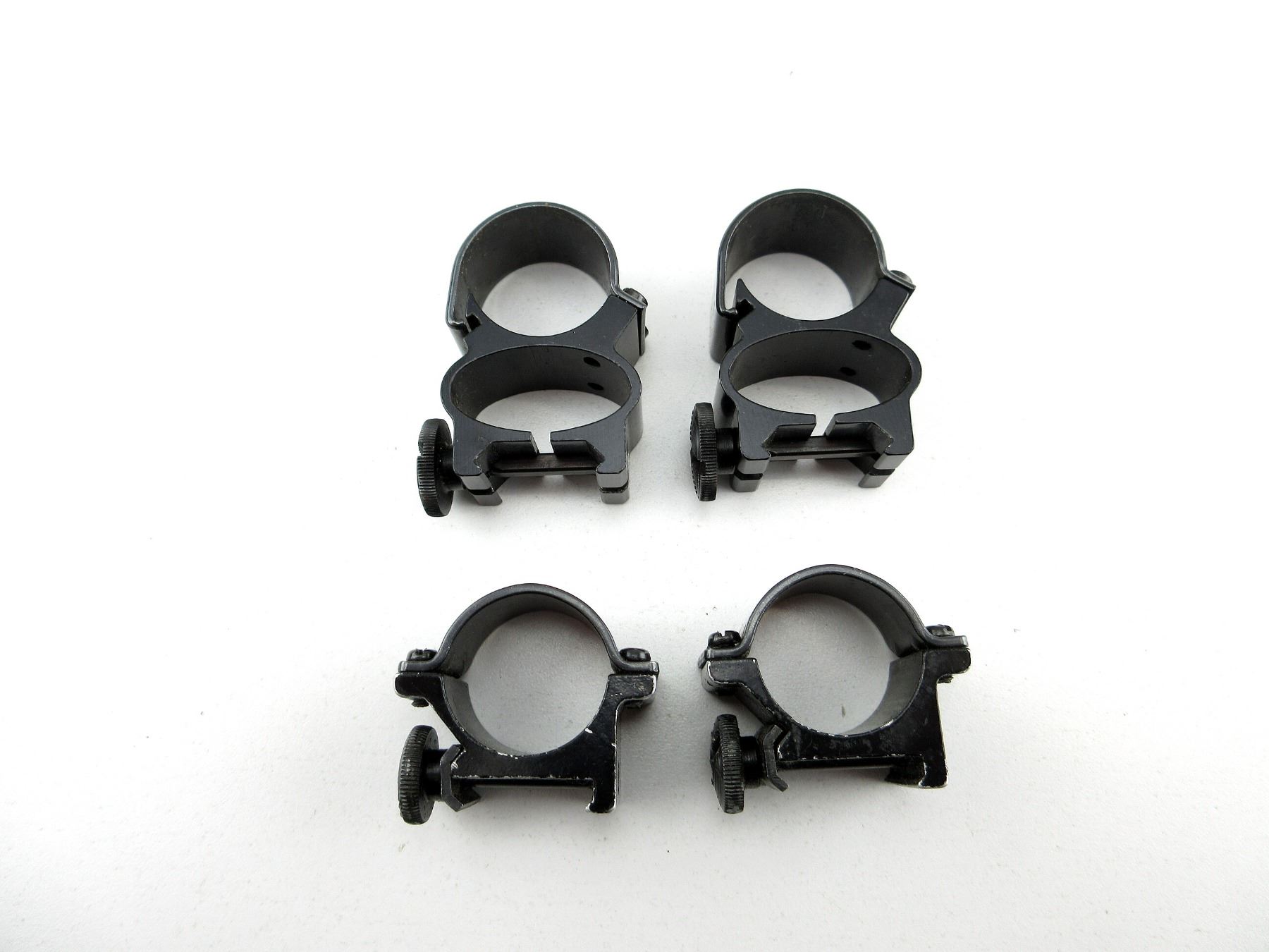 LOT INCLUDES; (1) PAIR OF 1" WEAVER SEE-THRU RINGS, MARKED: "WEAVER, U.S.A." & (1) PAIR OF 1" UNKNOWN LOW RINGS, UNMARKED. MAY REQUIRE FITTINGS. SEE PHOTOS.