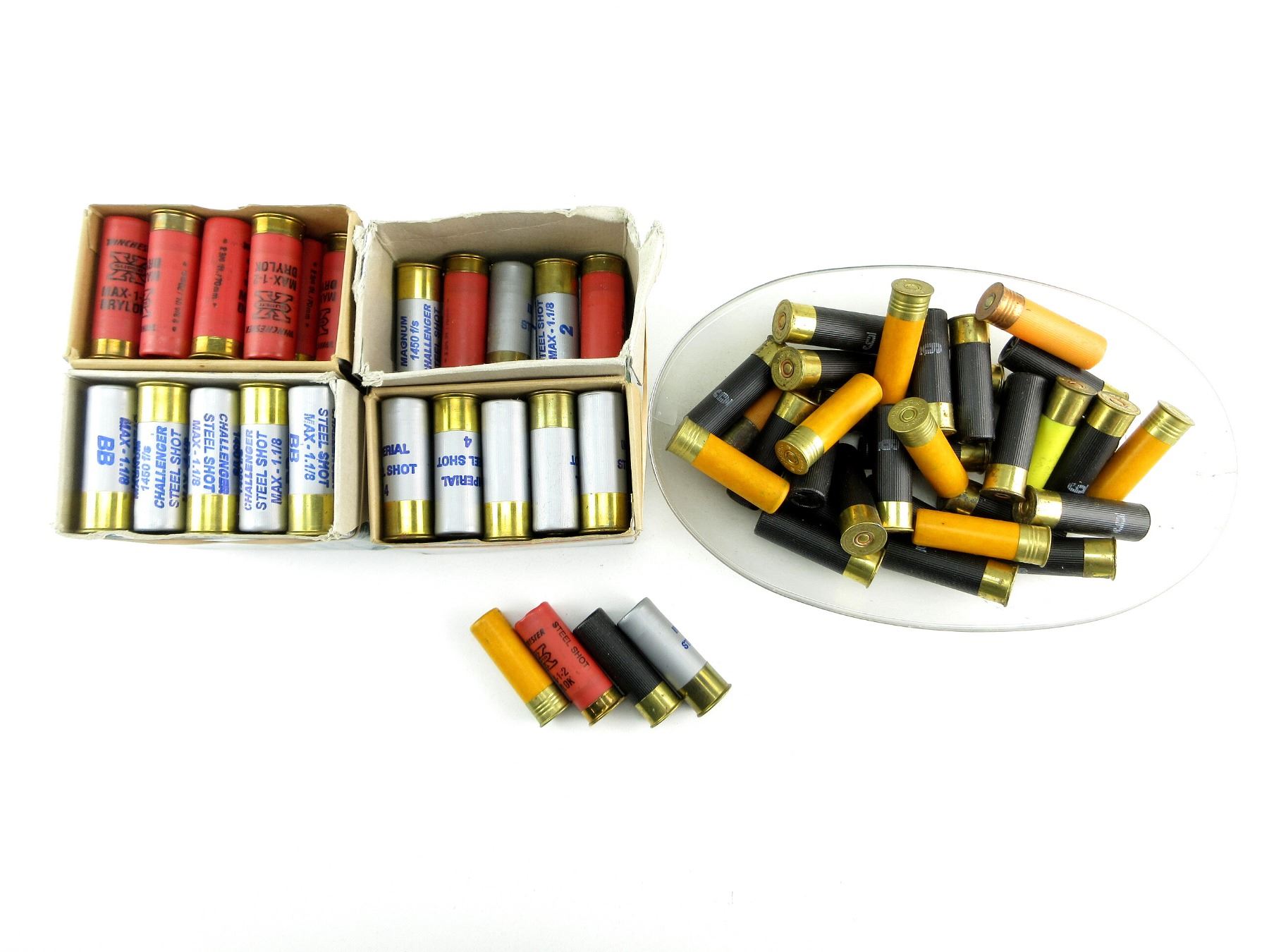 LOT INCLUDES; APPROX. (119) RNDS, VARIOUS MANUFACTURERS INCLUDING; WINCHESTER, CHALLENGER, ETC., ASSORTED SHOT SIZES; #2, #4, #BB, ETC.