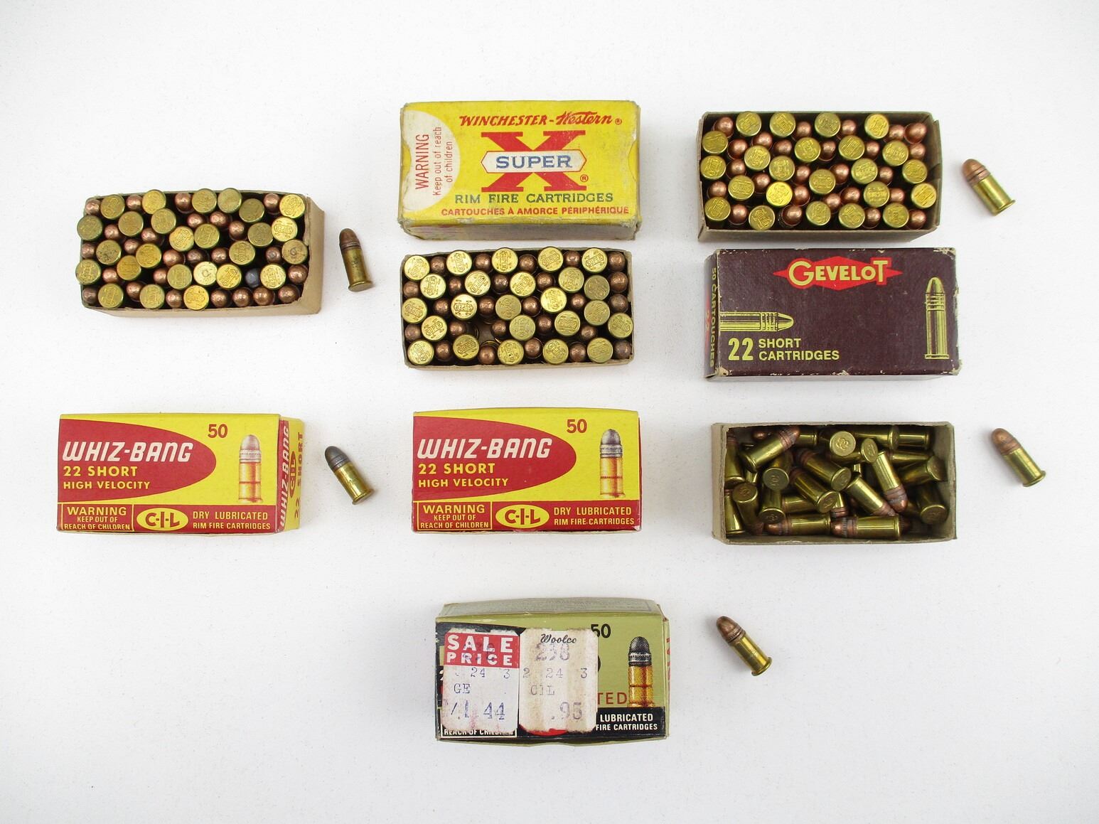 ASSORTED .22 SHORT AMMO LOT, LOT INCLUDES; APPROX. 307 RNDS, VARIOUS MANUFACTURERS INCLUDING: CIL WHIZ-BANG & IMPERIAL, WINCHESTER SUPERX, GEVELOT, ETC. THERE ARE NEW SHIPPING RESTRICTIONS, PLEASE MAKE SURE YOU HAVE READ AND CONFIRMED WE CAN SHIP TO YOU BEFORE BIDDING ON THIS LOT. PLEASE SEE LOT 0 IN THIS SESSION. NO REFUNDS WILL BE ISSUED, OR BIDS RETRACTED.