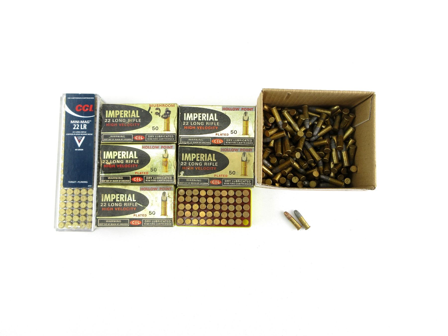 LOT INCLUDES; APPROX. (390) RNDS, VARIOUS MANUFACTURERS INCLUDING; CCI, IMPERIAL, ETC., (1) UNOPENED.