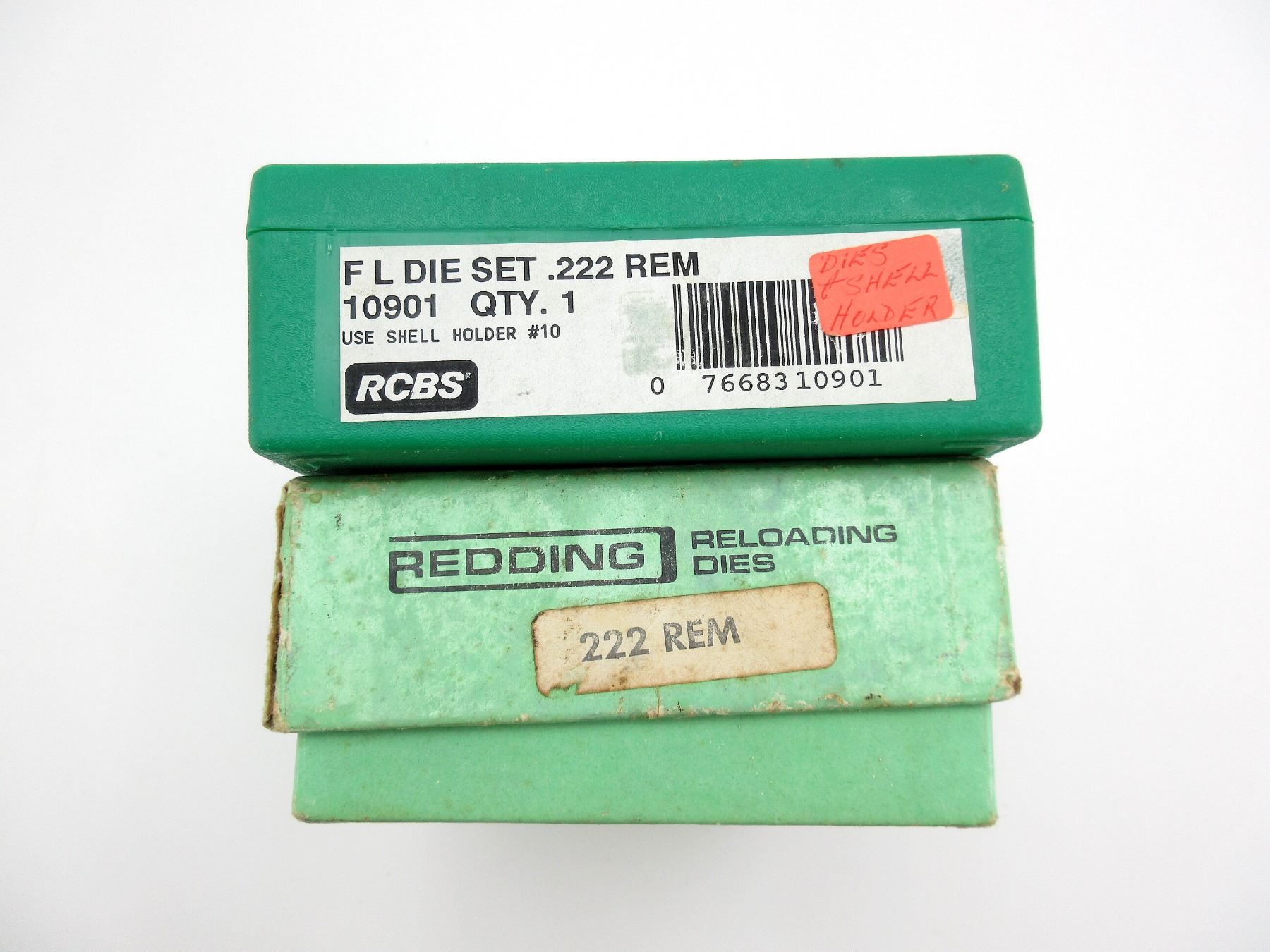 LOT INCLUDES; (1) RCBS .222 REM 2-PIECE RELOADING DIES & (1) REDDING .222 REM 2-PIECE RELOADING DIES. SEE PHOTOS.
