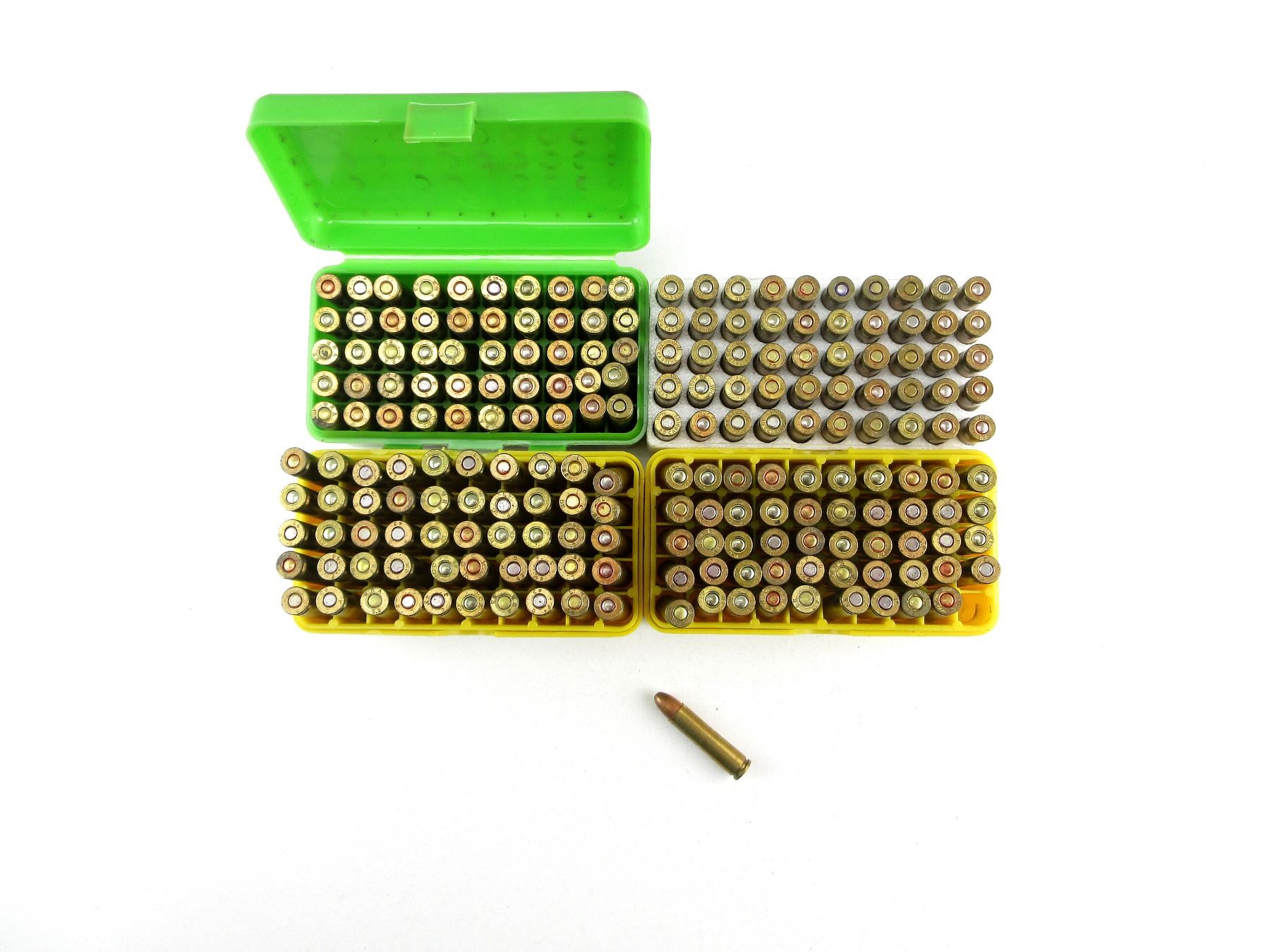 LOT INCLUDES; APPROX. (200) RNDS, VARIOUS MANUFACTURERS INCLUDING; WINCHESTER, REMINGTON, ETC., CONTAINS SOME MILITARY RNDS, (3) PLASTIC AMMO BOXES.