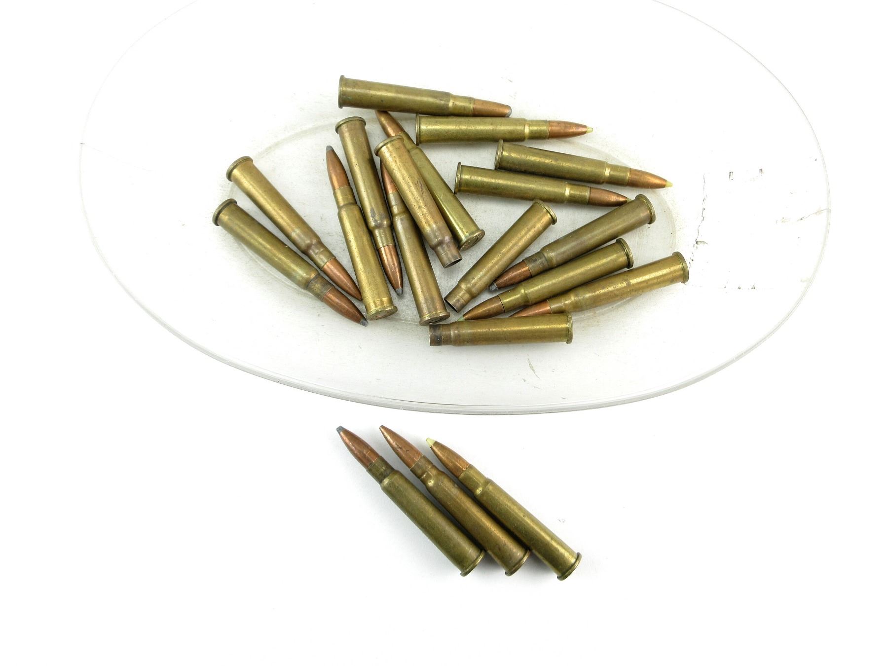 LOT INCLUDES; APPROX. (16) RNDS, VARIOUS MANUFACTURERS INCLUDING; IMPERIAL, DOMINION, W.R.A., ETC., (3) NON-PRIMED BRASS CASES, CONTAINS SOME MILITARY RNDS.