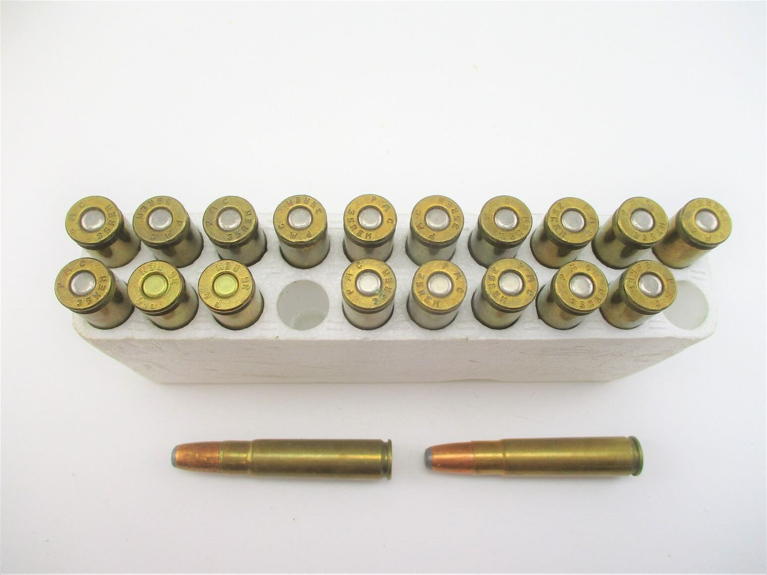 ASSORTED .35 REM AMMO , 20 RNDS, ASSORTED GRNS, SP , THERE ARE NEW SHIPPING RESTRICTIONS, PLEASE MAKE SURE YOU HAVE READ AND CONFIRMED WE CAN SHIP TO YOU BEFORE BIDDING ON THIS LOT. PLEASE SEE LOT 0 IN THIS SESSION. NO REFUNDS WILL BE ISSUED, OR BIDS RETRACTED.
