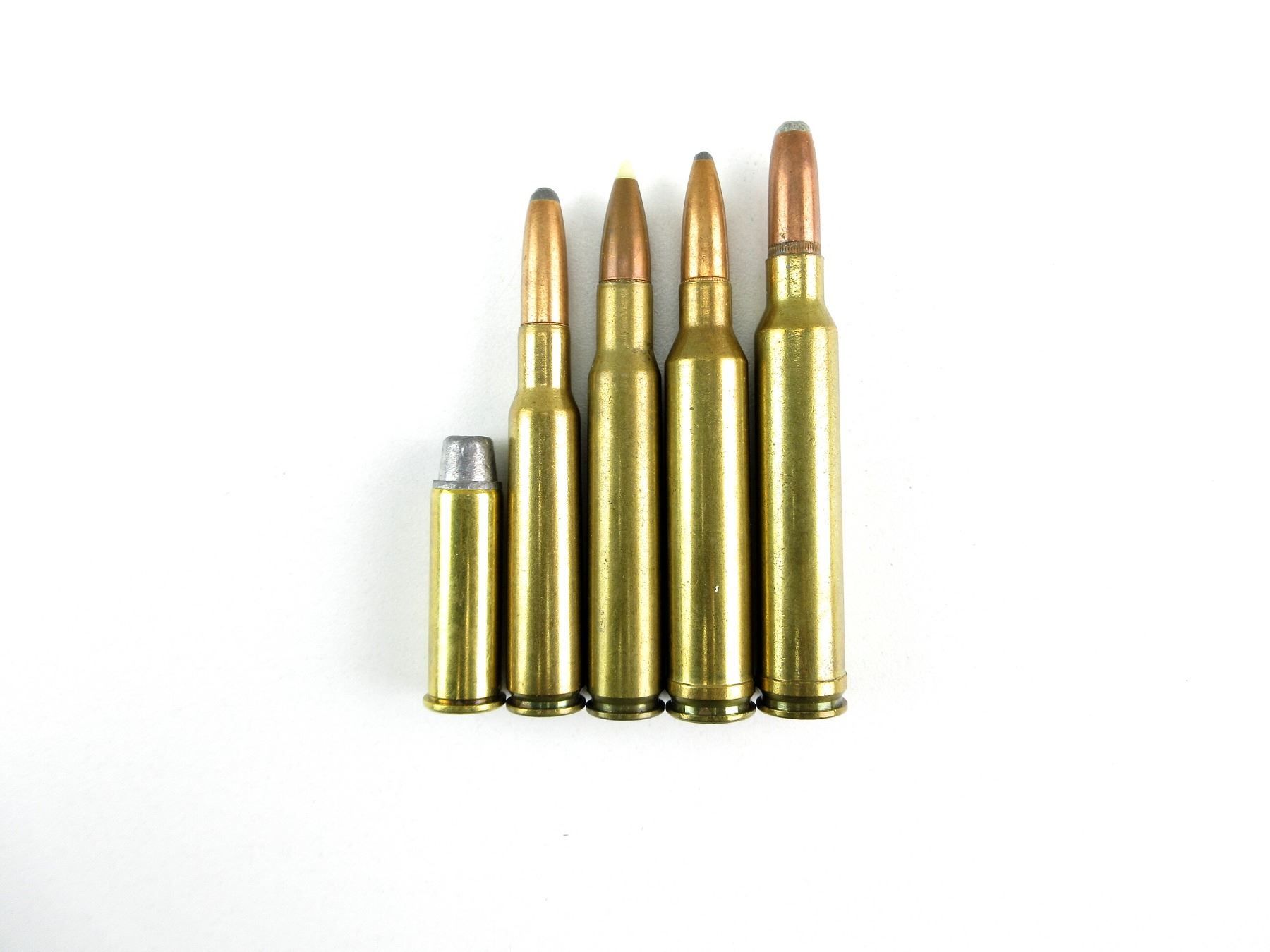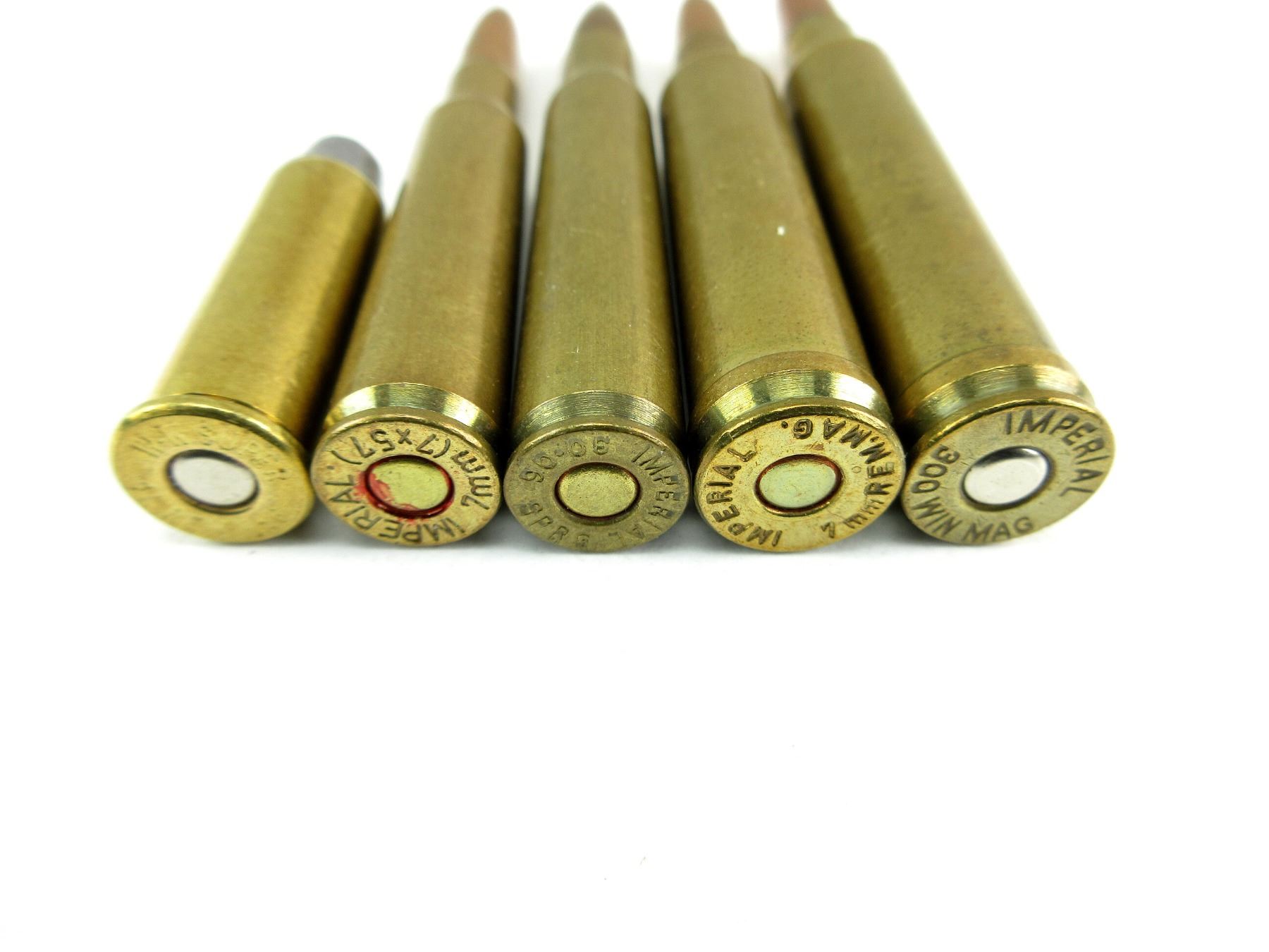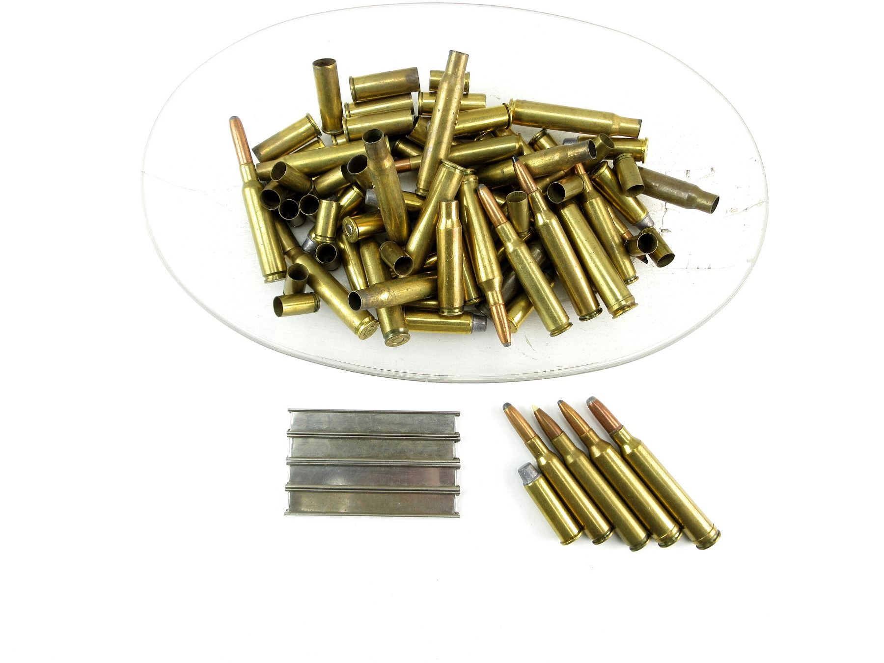 LOT INCLUDES; APPROX. (34) RNDS, VARIOUS CALIBERS INCLUDING; .41 REM MAG, .30-06 SPRG, 7MM, 7MM REM MAG, .300 WIN MAG, ETC., (43) NON-PRIMED BRASS CASES, (4) STRIPPER CLIPS.