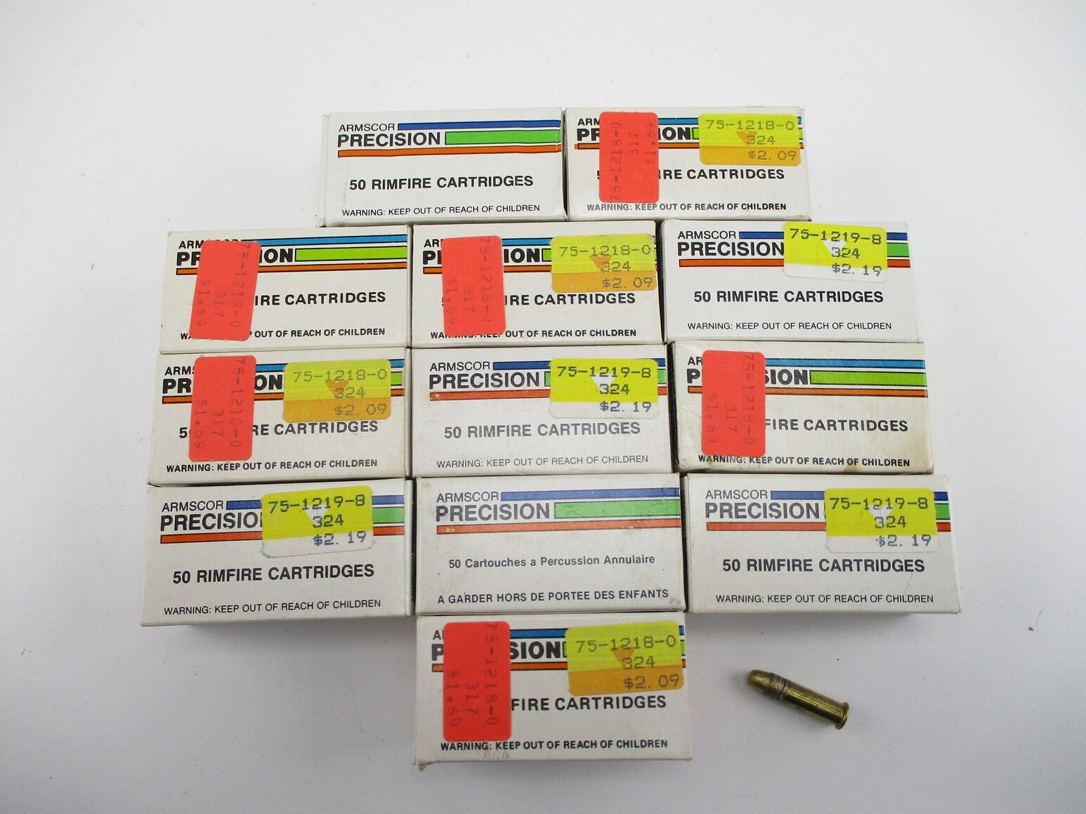 ASSORTED ARMSCOR PRECISION .22 AMMO , APPROX 600 RNDS , THERE ARE NEW SHIPPING RESTRICTIONS, PLEASE MAKE SURE YOU HAVE READ AND CONFIRMED WE CAN SHIP TO YOU BEFORE BIDDING ON THIS LOT. PLEASE SEE LOT 0 IN THIS SESSION. NO REFUNDS WILL BE ISSUED, OR BIDS RETRACTED.