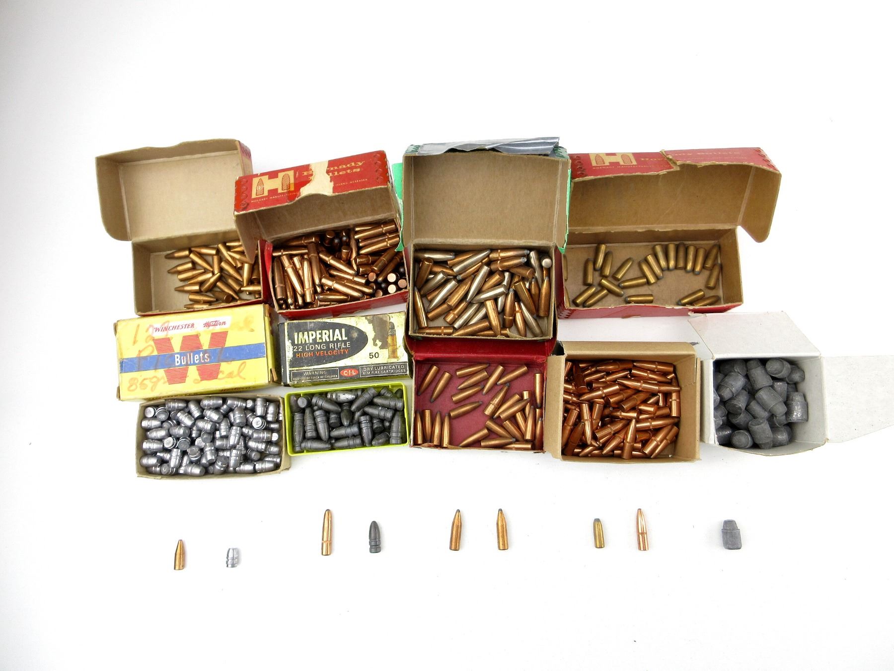 LOT INCLUDES; APPROX. 9 LBS BULLETS, APPROX. DIA .255", .263", .308", .275", ETC.