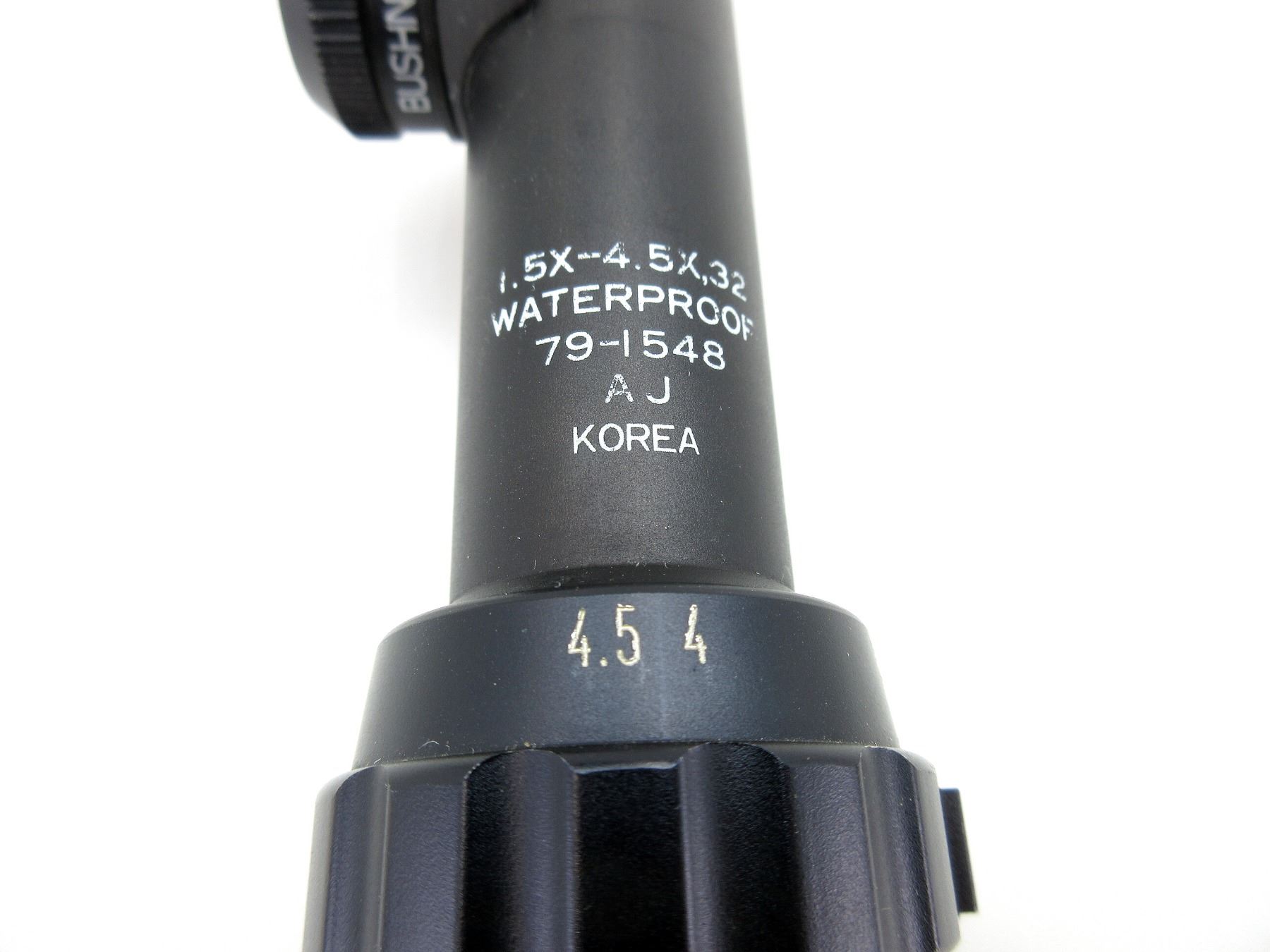 LOT INCLUDES; (1) BUSHNELL WIDE ANGLE 1.5-4.5X32MM RIFLE SCOPE, CLEAR OPTICS, CIRCLE X RETICLE, 1" TUBE DIAMETER, WORKING MAGNIFICATION RING, WINDAGE & ELEVATION KNOBS TURN, (1) BUSHNELL 1.5-4X20MM RIFLE SCOPE, CLEAR OPTICS, DUPLEX RETICLE, 1" TUBE DIAMETER, WORKING MAGNIFICATION RING, WINDAGE & ELEVATION KNOBS TURN, WITH BIKINI STYLE LENS COVERS. SEE PHOTOS.