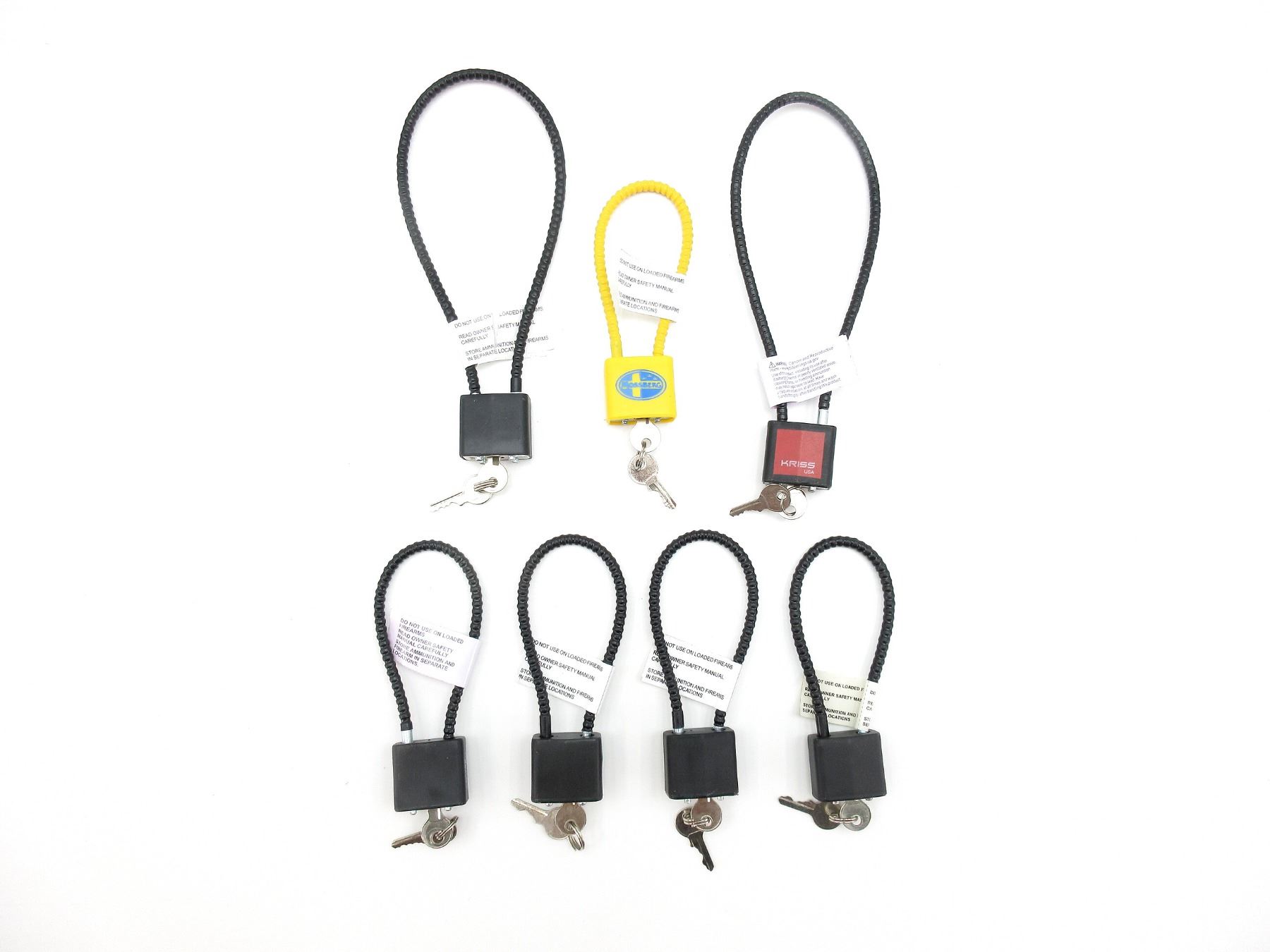 LOT INCLUDES; (7) CABLE TRIGGER LOCKS, WITH KEYS, VARIOUS SIZES. SEE PHOTOS.