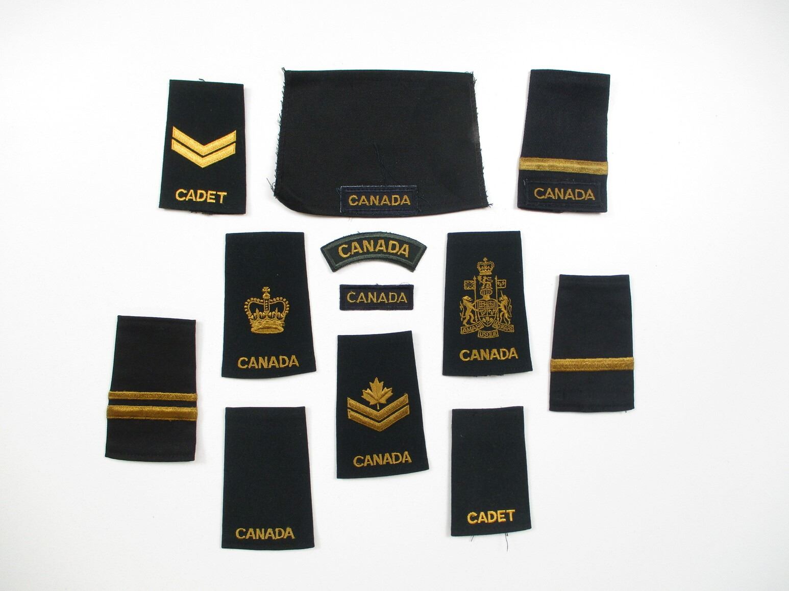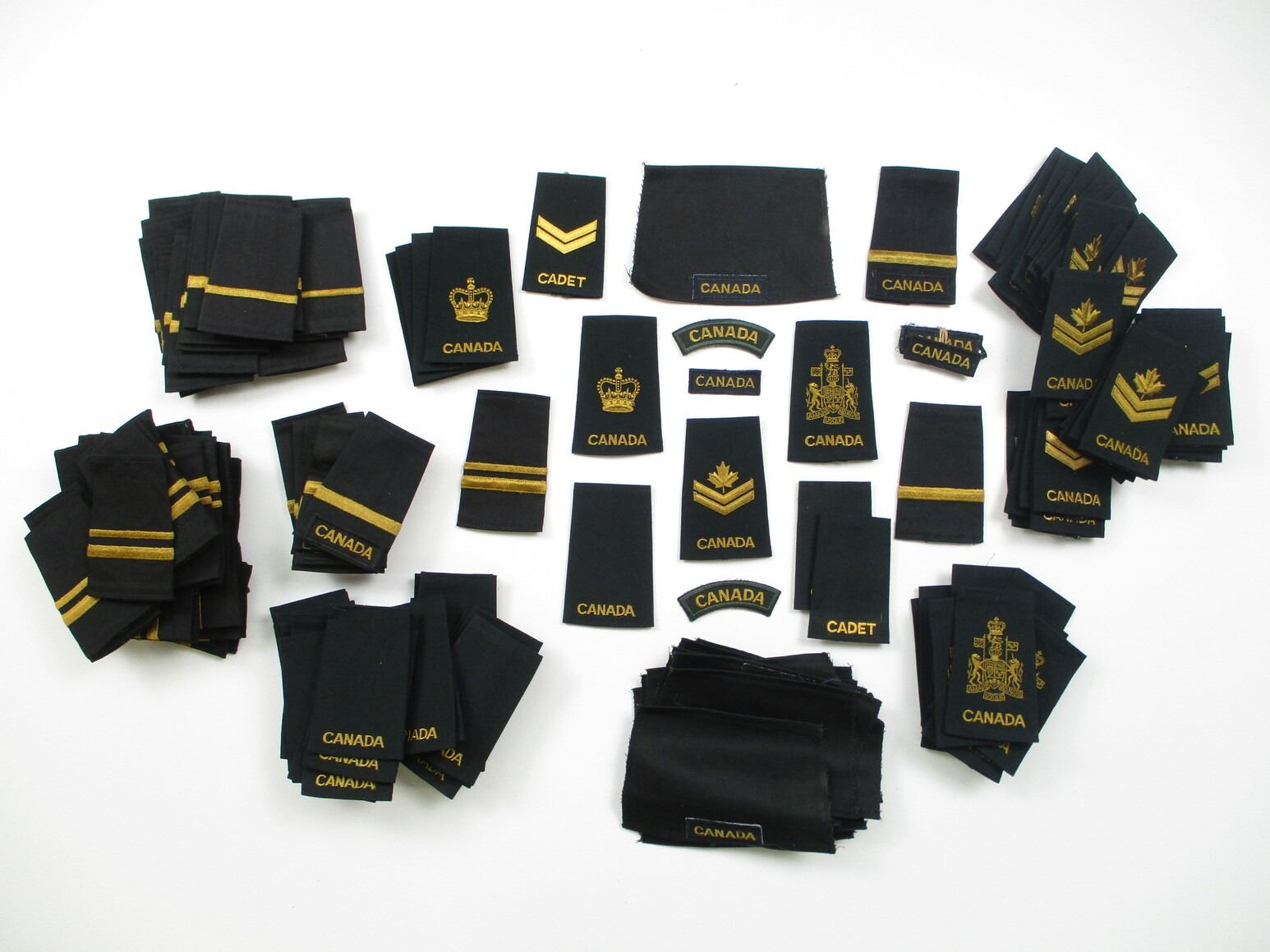 ASSORTED CANADIAN DRESS BADGES LOT, LOT INCLUDES; ARM BADGES, RANK STRIPES, QOR, CANADIAN BADGES, ETC.. SEE PHOTOS.