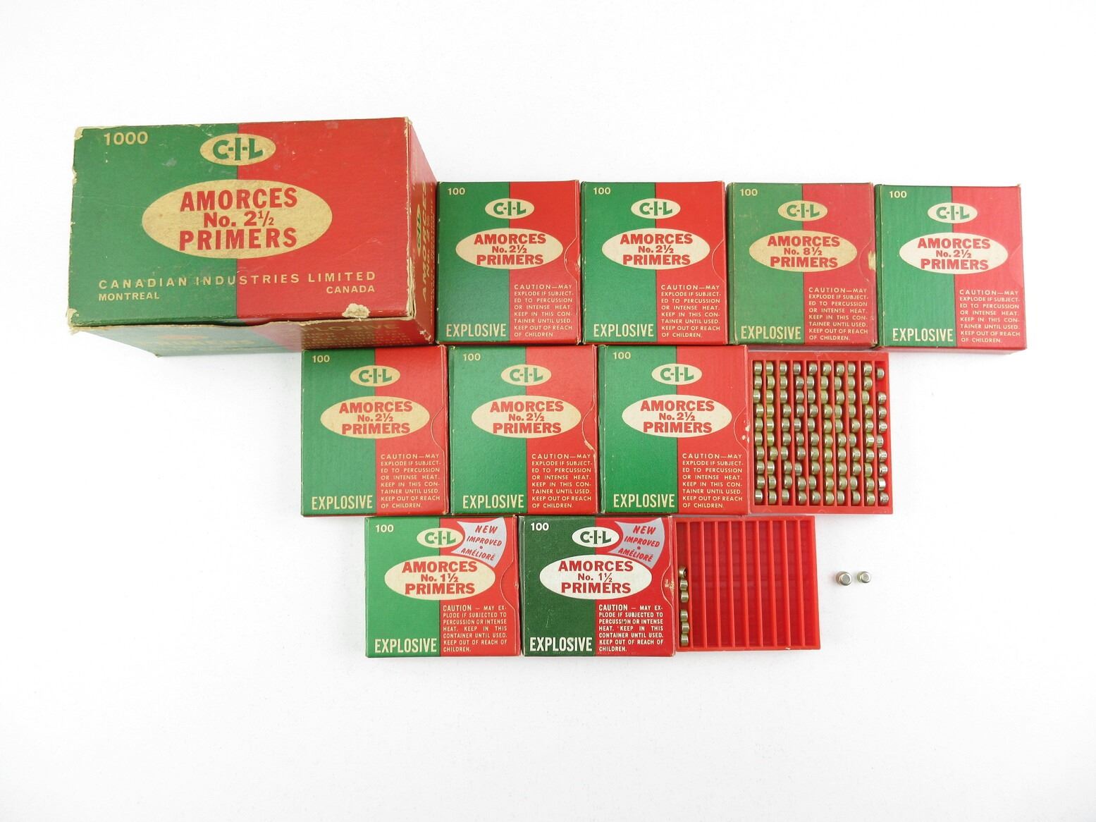 ASSORTED CIL PRIMERS LOT. LOT INCLUDES; APPROX (770) PRIMERS, VARIOUS SIZES INCLUDING; NO. 1 1/2, NO. 2 1/2, NO. 8 1/2.