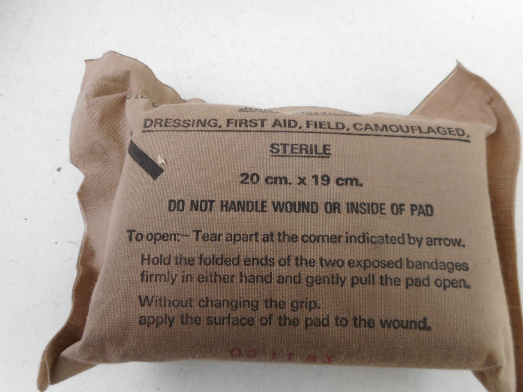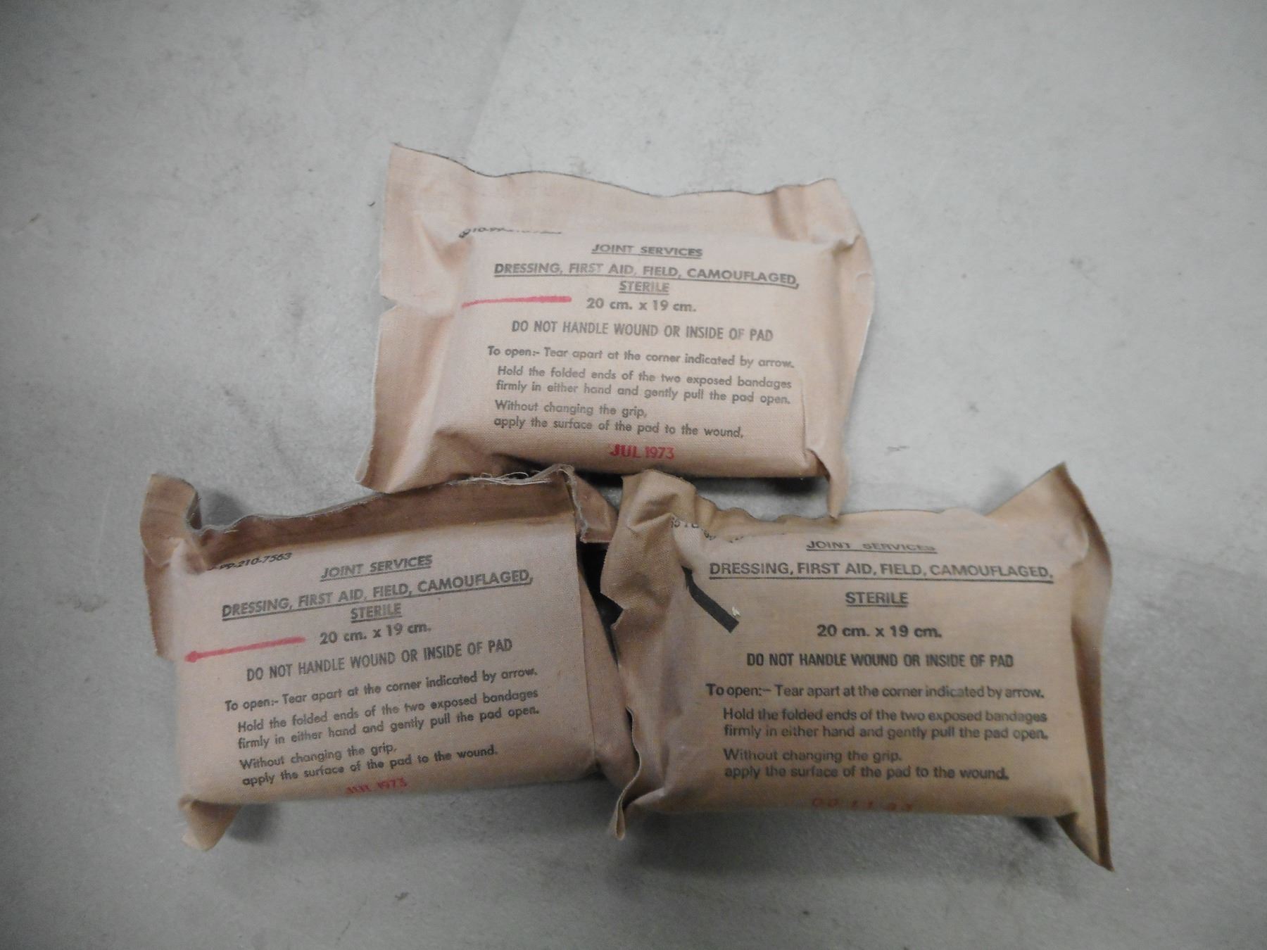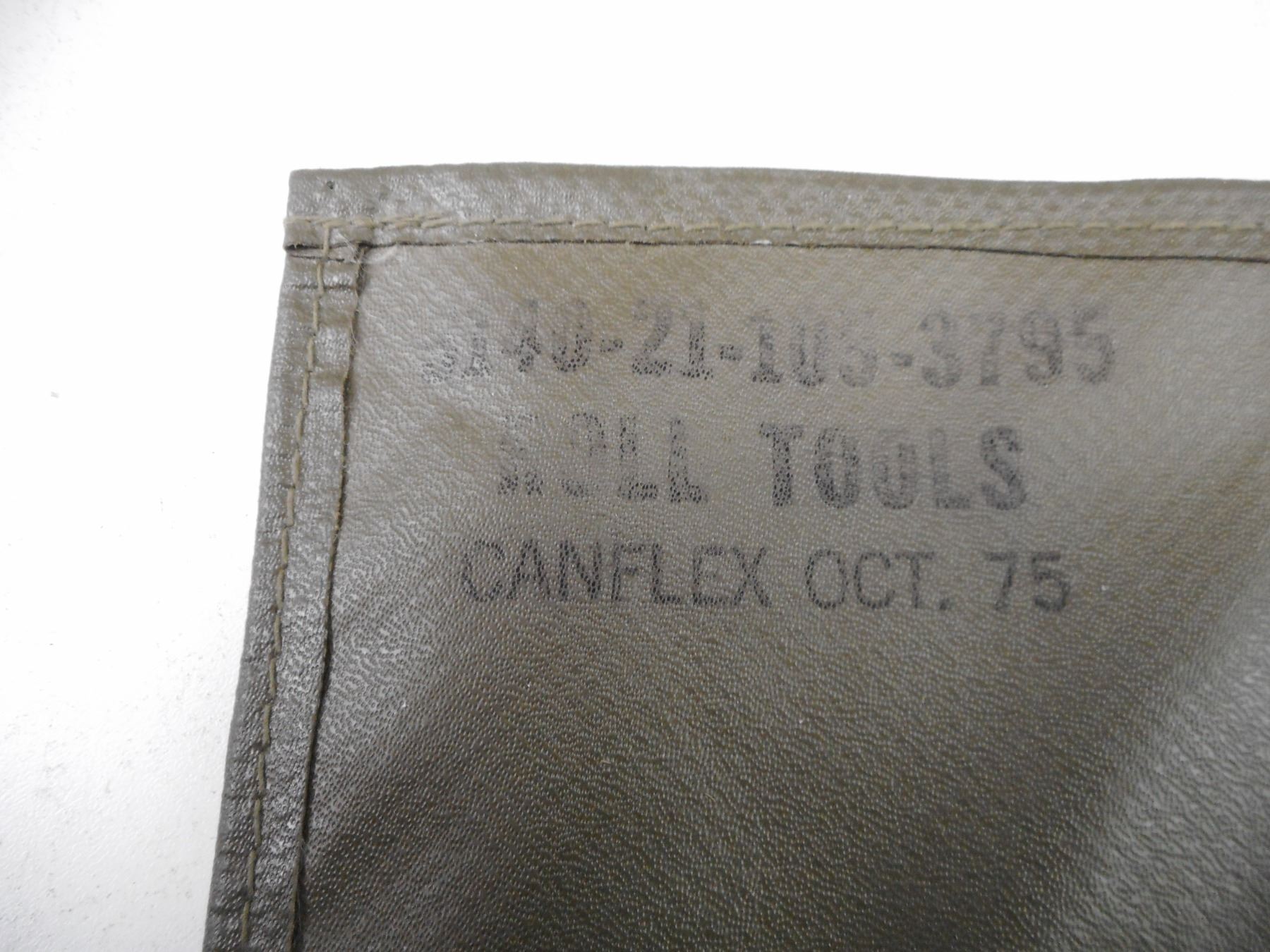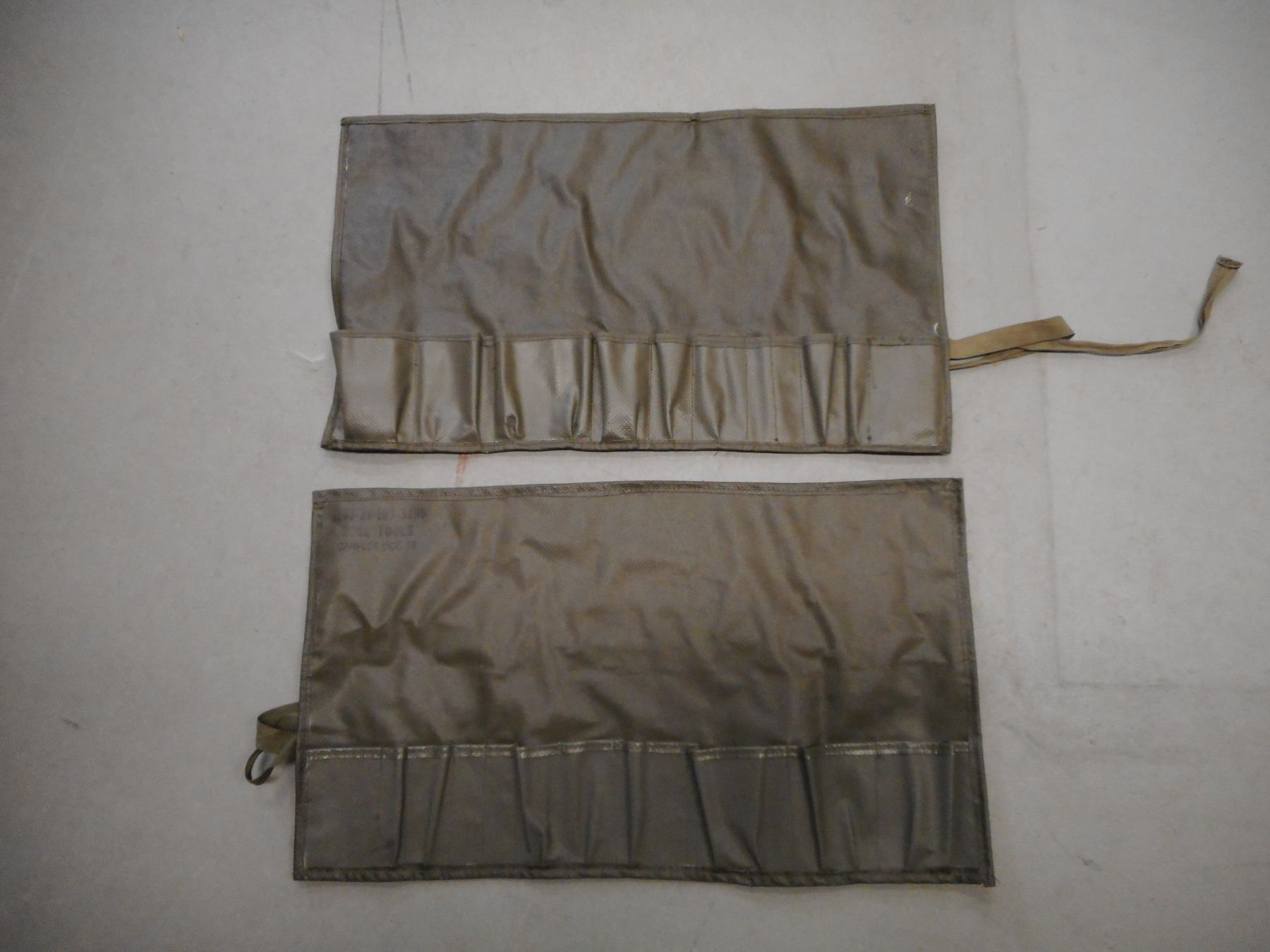 ASSORTED CLEANING EQUIPMENT , (3) EMPTY CLEANING BAGS, (1) CANVAS POUCH WITH 3 FIELD DRESSING (1) BACK PACK CARRIER, MARKED MEDCO 1961 BROAD ARROW. LOT OF 5