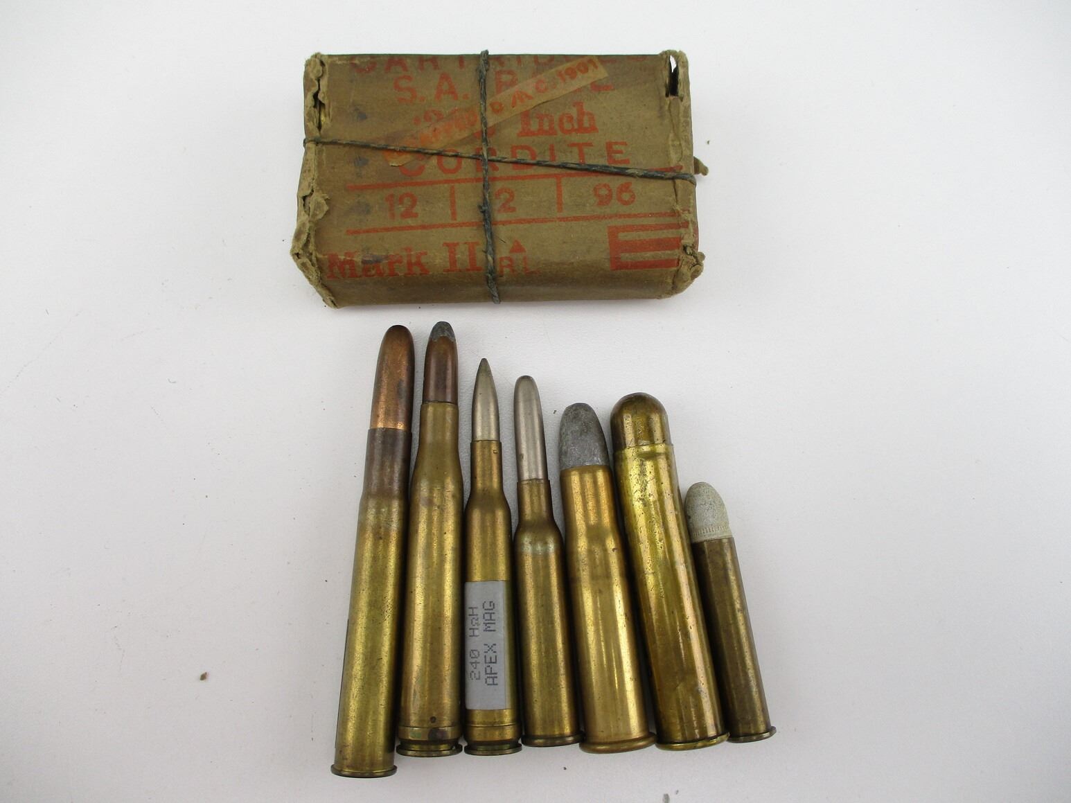 ASSORTED COLLECTIBLE LOT , 17 RNDS, INCLUDING .303" MILITARY AMMO IN UNOPENED PAPER WRAP, 400/350 NITRO, .240 HOLLAND, ETC , THERE ARE NEW SHIPPING RESTRICTIONS, PLEASE MAKE SURE YOU HAVE READ AND CONFIRMED WE CAN SHIP TO YOU BEFORE BIDDING ON THIS LOT. PLEASE SEE LOT 0 IN THIS SESSION. NO REFUNDS WILL BE ISSUED, OR BIDS RETRACTED.