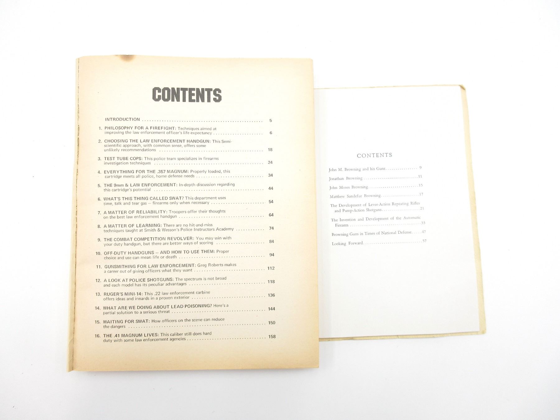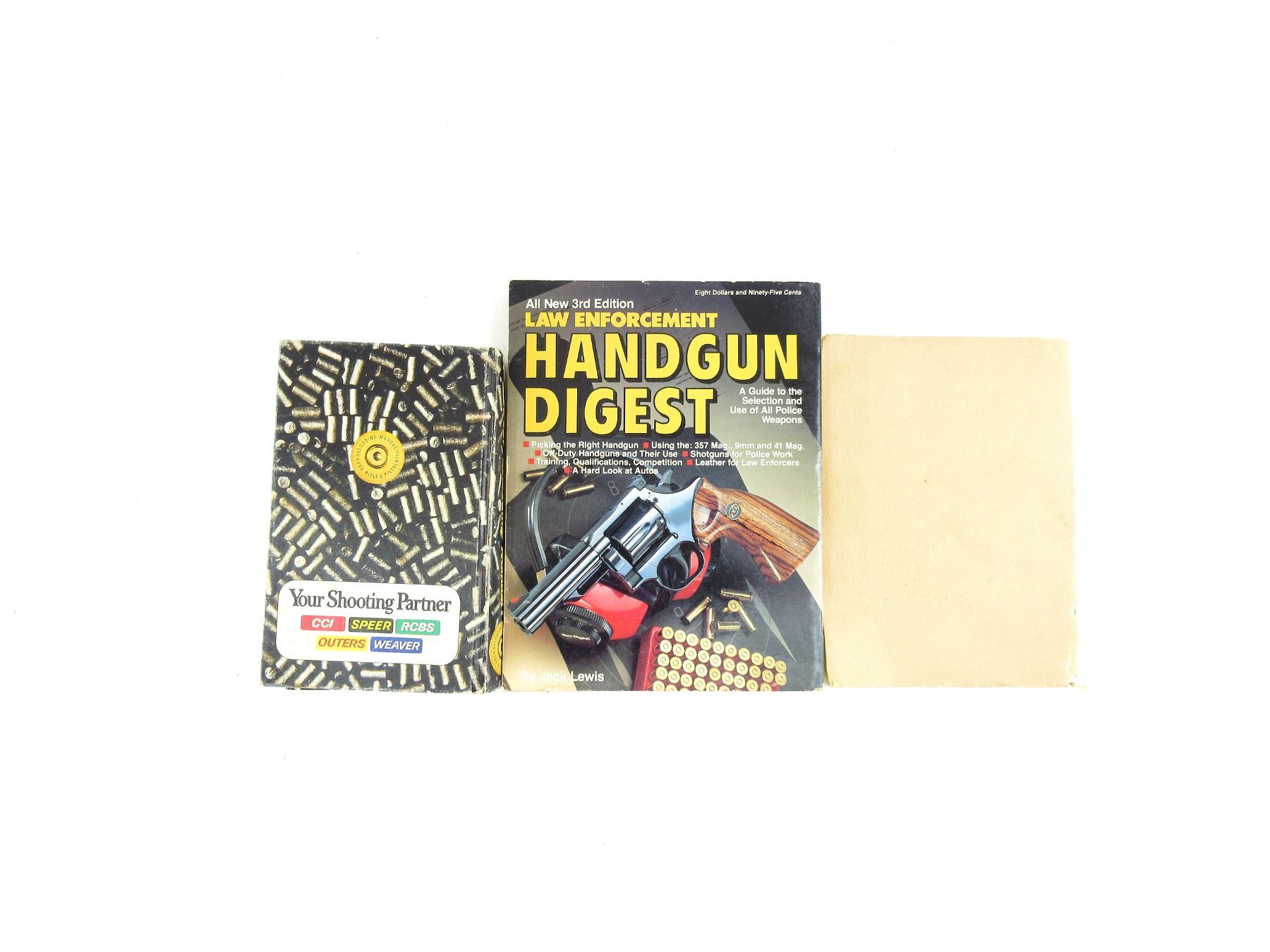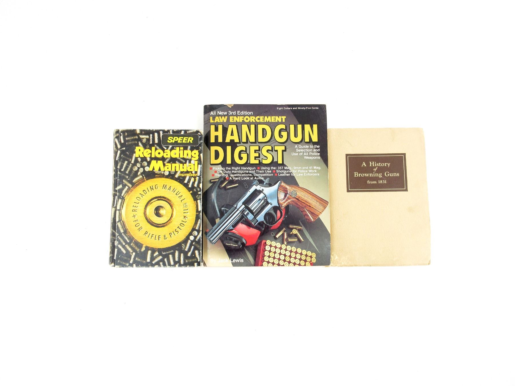LOT INCLUDES; (1) "A HISTORY OF BROWNING GUNS FROM 1831" BOOK PUBLISHED BY J.M. & M.S. BROWNING COMPANY, SOFT COVER, 1942, (1) "RELOADING MANUAL NUMBER 11" MANUAL BY OMARK INDUSTRIES, HARD COVER, COPYRIGHT 1988 & (1) "ALL NEW 3RD EDITION LAW ENFORCEMENT HANDGUN DIGEST" BOOK BY JACK LEWIS, SOFT COVER, ISBN: 0-695-81413-3. SEE PHOTOS.
