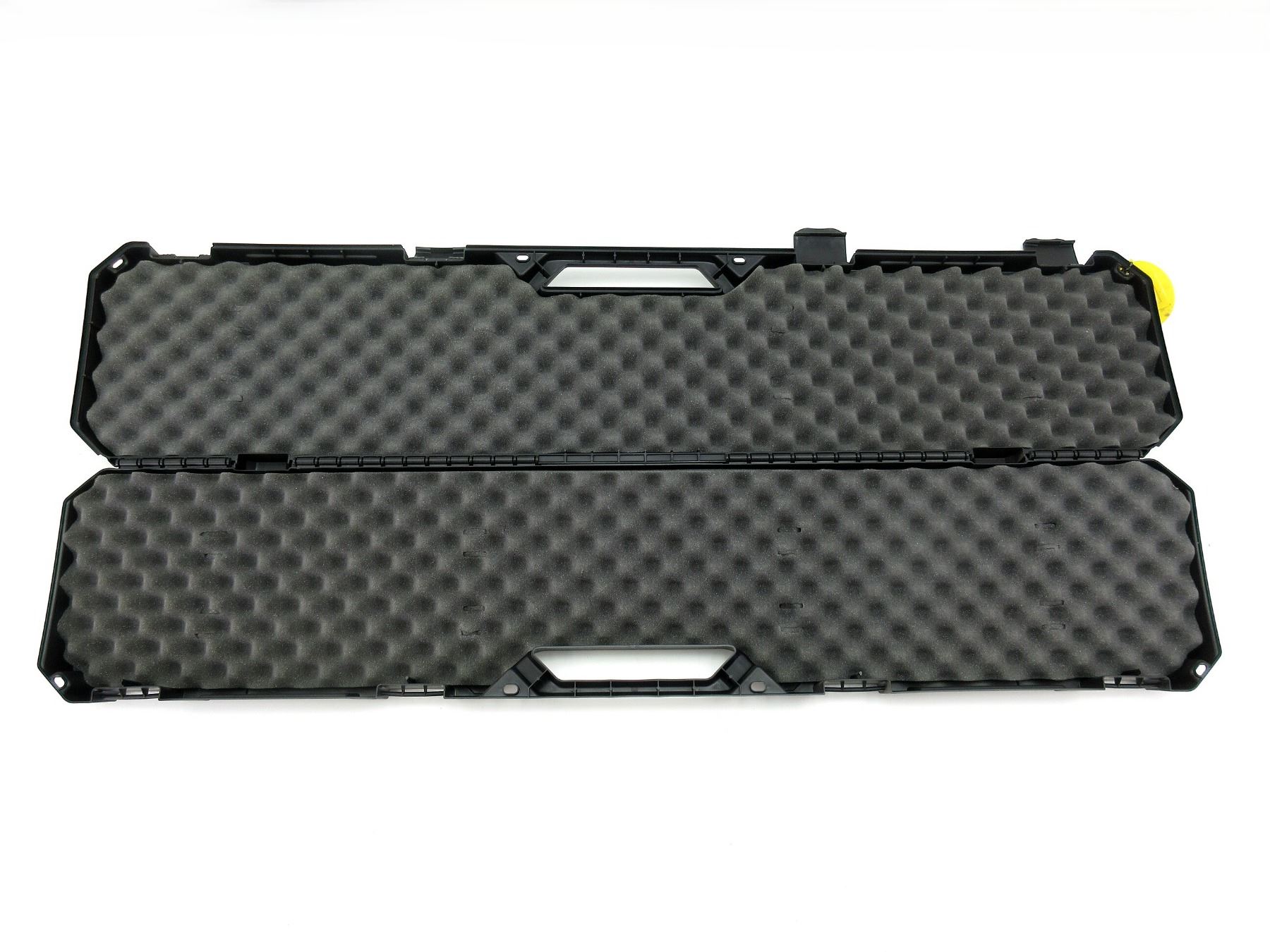 LOT INCLUDES; (1) HARD PADDED DOUBLE GUN CASE, CARRY HANDLE, (4) LATCHES, (1) HARD PADDED GUN CASE, CARRY HANDLE, (4) LATCHES, APPROX. OAL 49"-52", SHOWS WEAR AND TEAR FROM USAGE, SEE PHOTOS.
