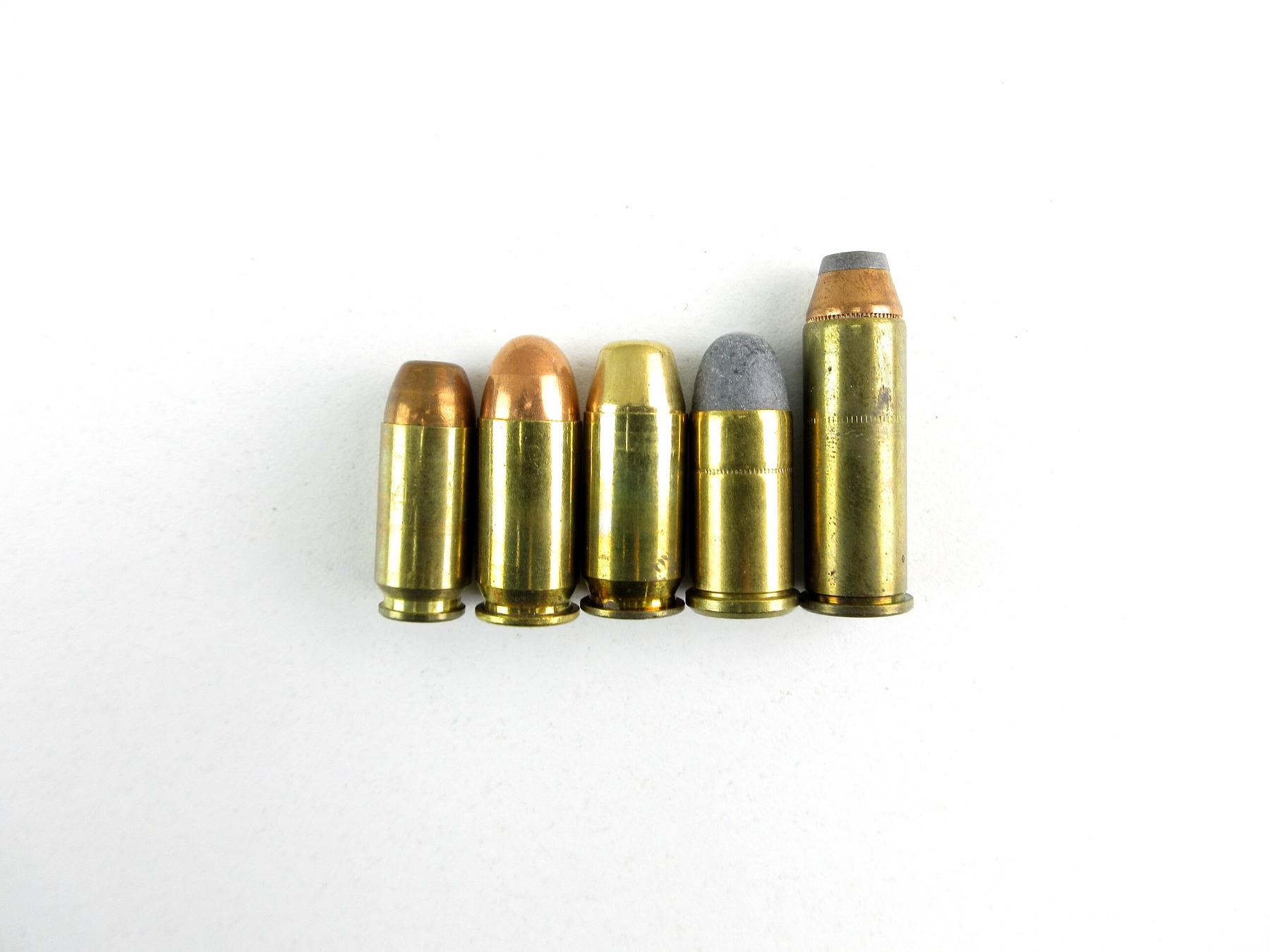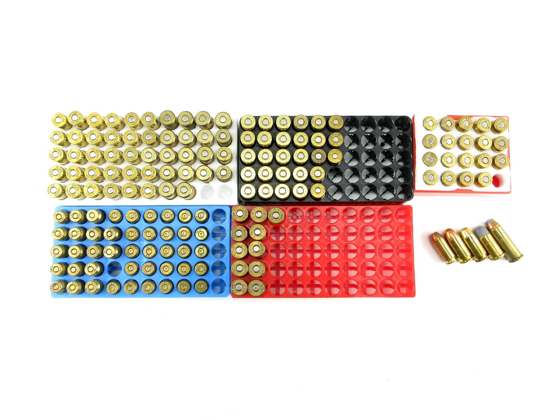 LOT INCLUDES; APPROX. (128) RNDS, VARIOUS MANUFACTURERS, ASSORTED CALIBERS INCLUDING; .41 ACTION EXPRESS, .44 REM MAG, .45 ACP, ETC., 27 NON-PRIMED BRASS CASES.
