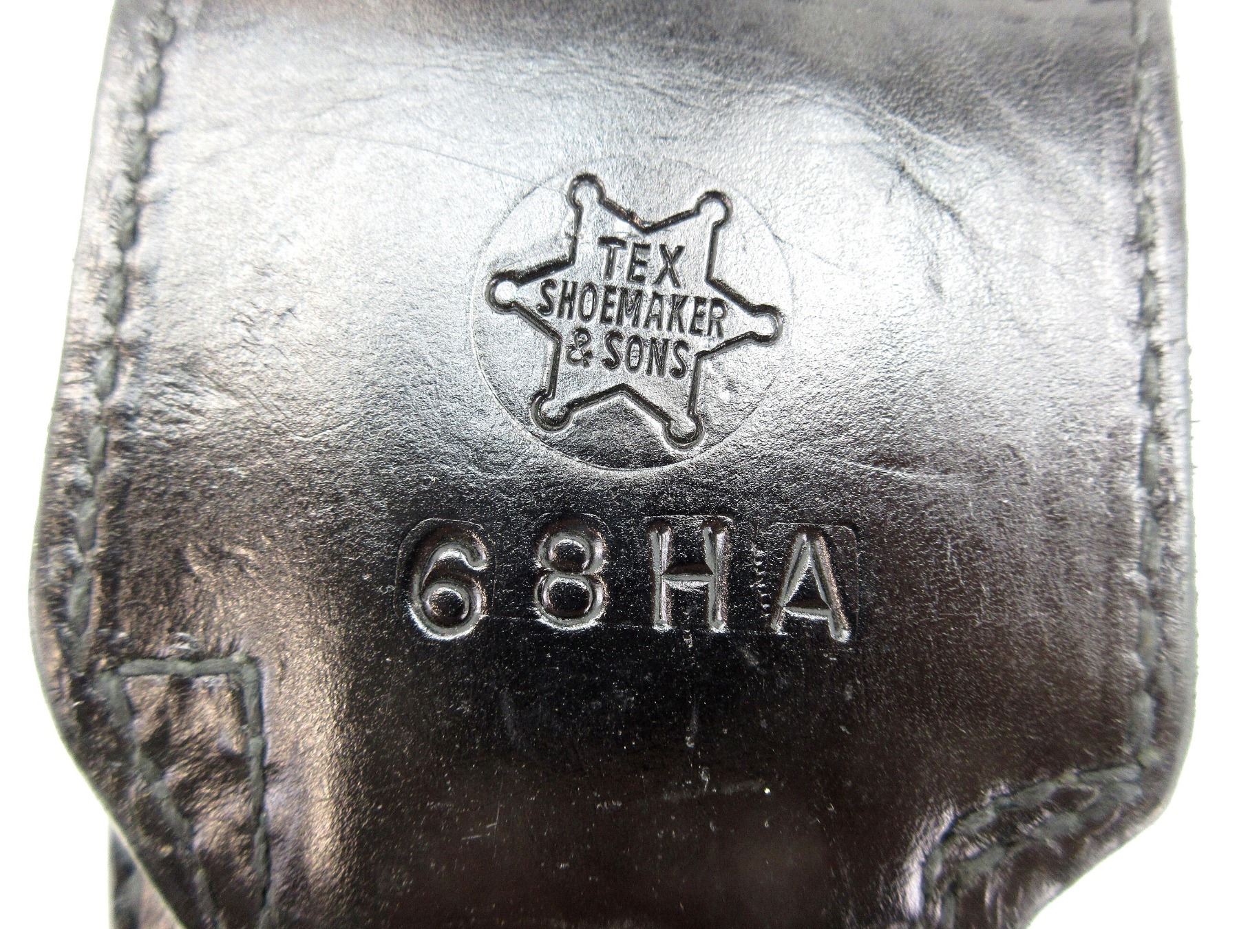 LOT INCLUDES; (1) TEXAS SHOEMAKER & SONS HOLSTER, BLACK LEATHER CONSTRUCTION, BASKET WEAVE PATTERN, RIGHT HANDED, BACK MARKED: "68HA", OAL APPROX. 8.75", (1) SMITH & WESSON HOLSTER, BLACK LEATHER CONSTRUCTION, LEFT HANDED, BACK MARKED: "B 34 96LH", OAL APPROX. 9.25", (1) SAFARILAND MODEL 0701 HOLSTER, BLACK POLYMER CONSTRUCTION, RIGHT HANDED, BACK MARKED: "S&W 659 5906", INSIDE SHOWS WEAR & TEAR, OAL APPROX. 6.25", (1) NOVA CANADA HOLSTER, BLACK LEATHER CONSTRUCTION, RIGHT HANDED, OAL APPROX. 7.5", (1) BIANCHI RANGER SERIES HOLSTER, BLACK NYLON CONSTRUCTION, RIGHT HANDED, OAL APPROX. 9", (1) UNKNOWN BLACK POLYMER HOLSTER, WITH DROP LEG PLATFORM, UNMARKED, HOLSTER OAL APPROX. 7.5", (1) BUTLER CREEK SLING, PADDED SHOULDER STRAP, ADJUSTABLE, OAL APPROX. 34", WITH VARIOUS DOUBLE MAGAZINE POUCHES, TACTICAL KNEE PADS, ETC. SEE PHOTOS.