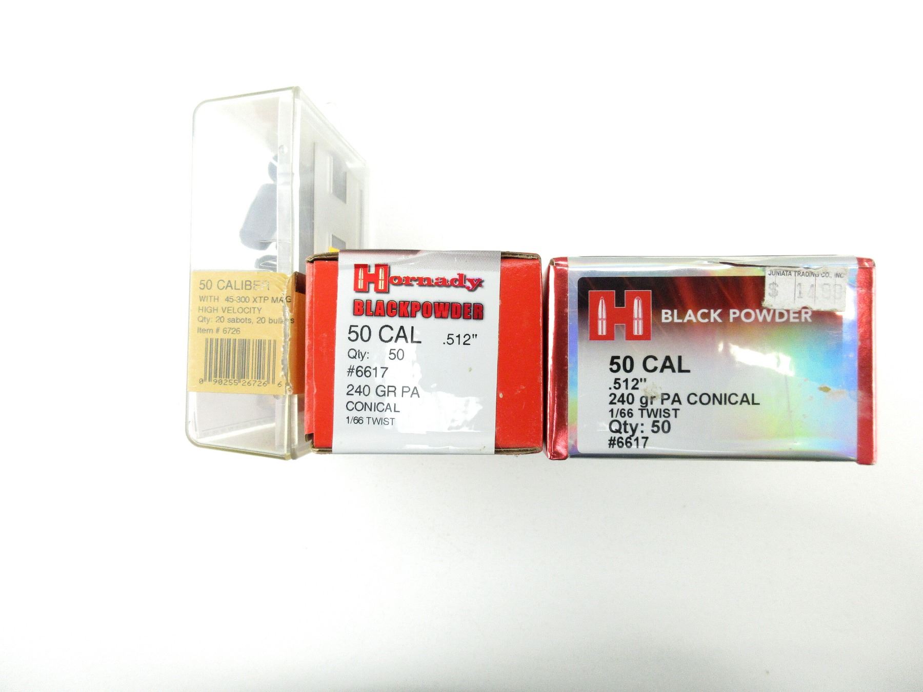 ASSORTED HORNADY BLACK POWDER .50 CALIBER BULLETS AND SABOTS LOT