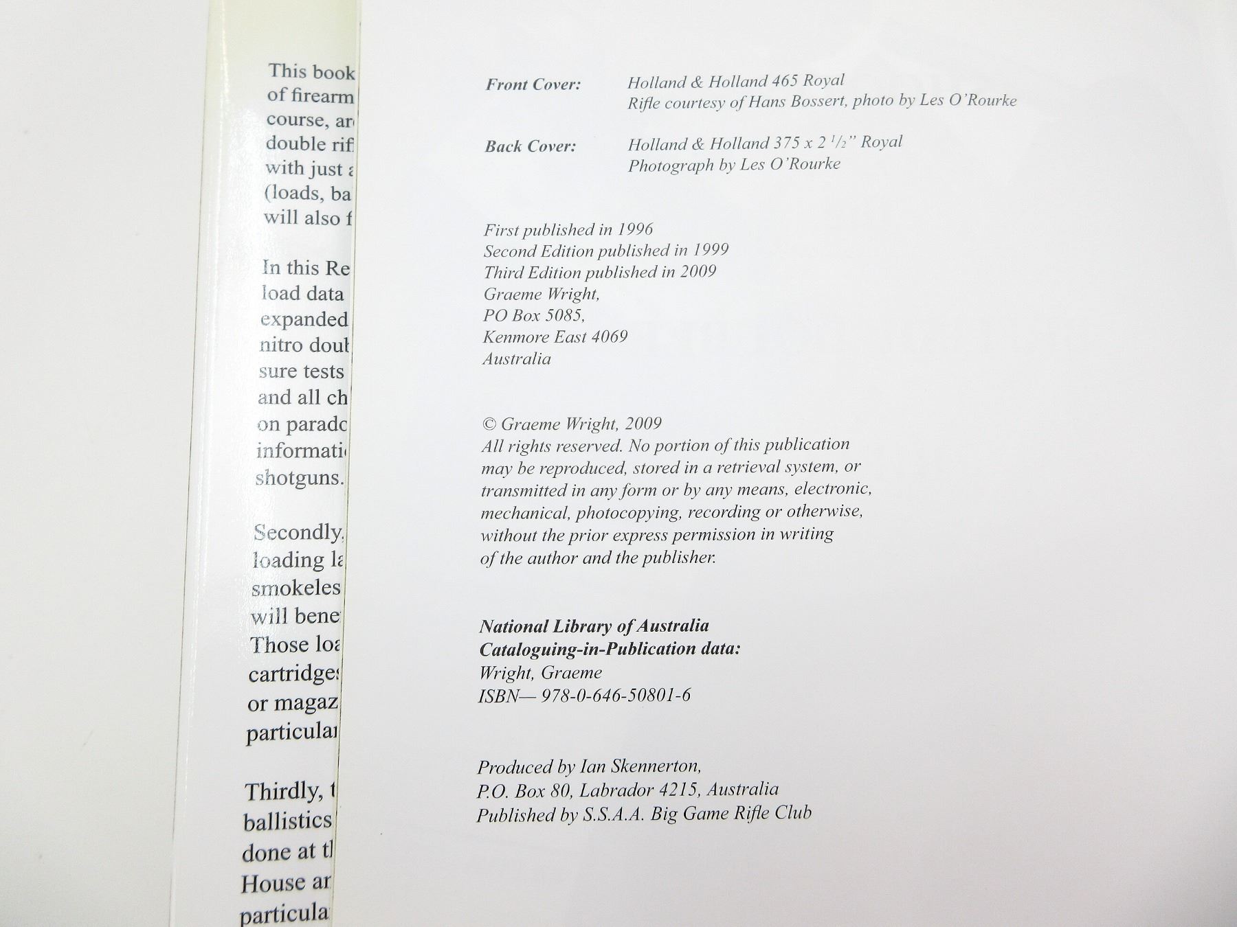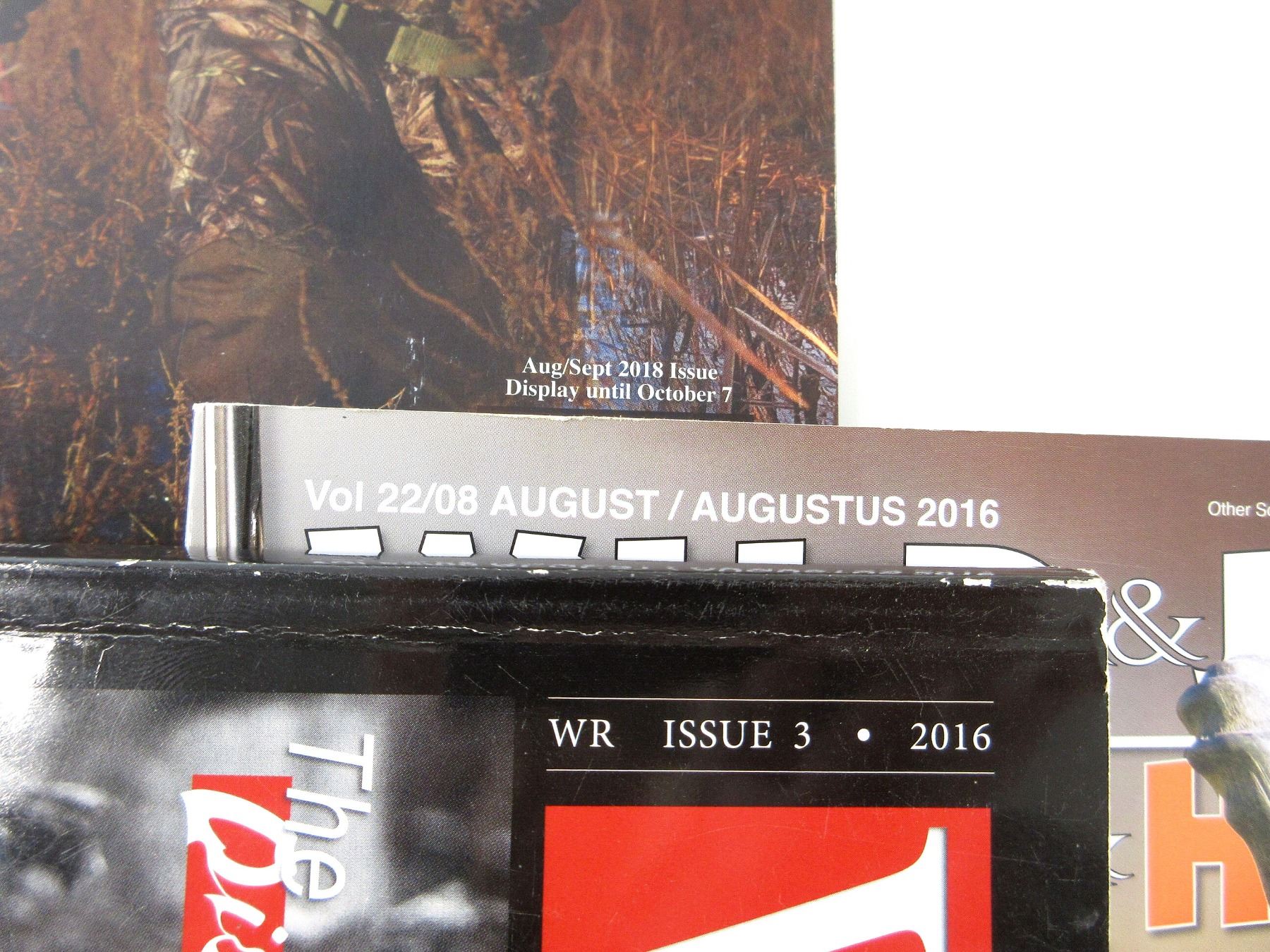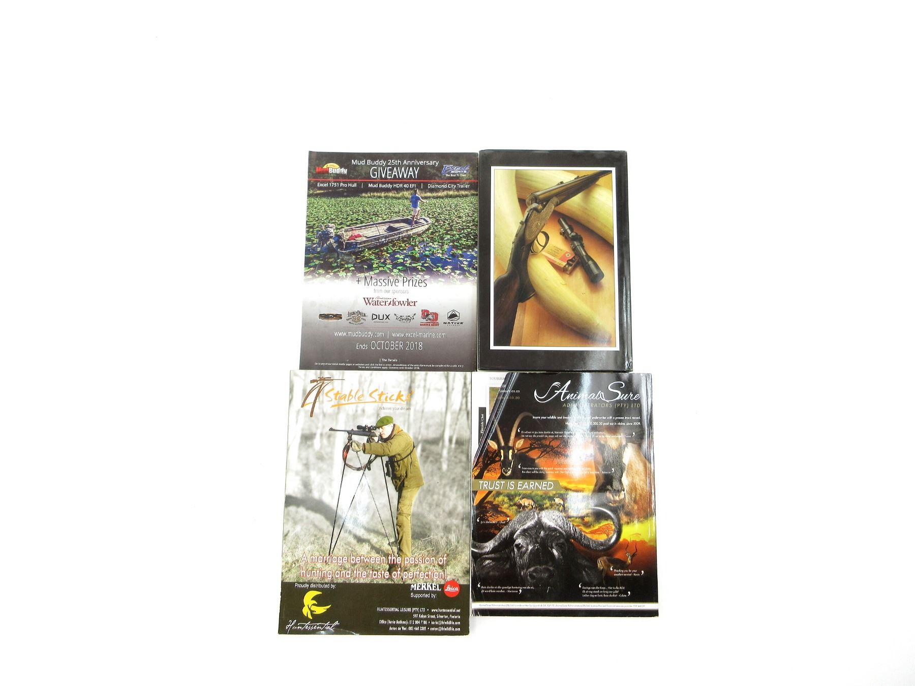 LOT INCLUDES; (1) "SHOOTING THE BRITISH DOUBLE RIFLE, A MODERN GUIDE FOR LOAD DEVELOPMENT AND USE, 3RD EDITION" BOOK BY GRAEME WRIGHT, HARD COVER WITH DUST COVER, ISBN: 978-0-646-50801-6, (1) "WILD & JAG GAME & HUNT" MAGAZINE, AUGUST 2016, (1) "WILDLIFE RANCHING, THE DISCOVERY ISSUE" MAGAZINE, 2016& (1) "AMERICAN WATER FOWLER" MAGAZINE, AUG / SEPT 2018. SEE PHOTOS.