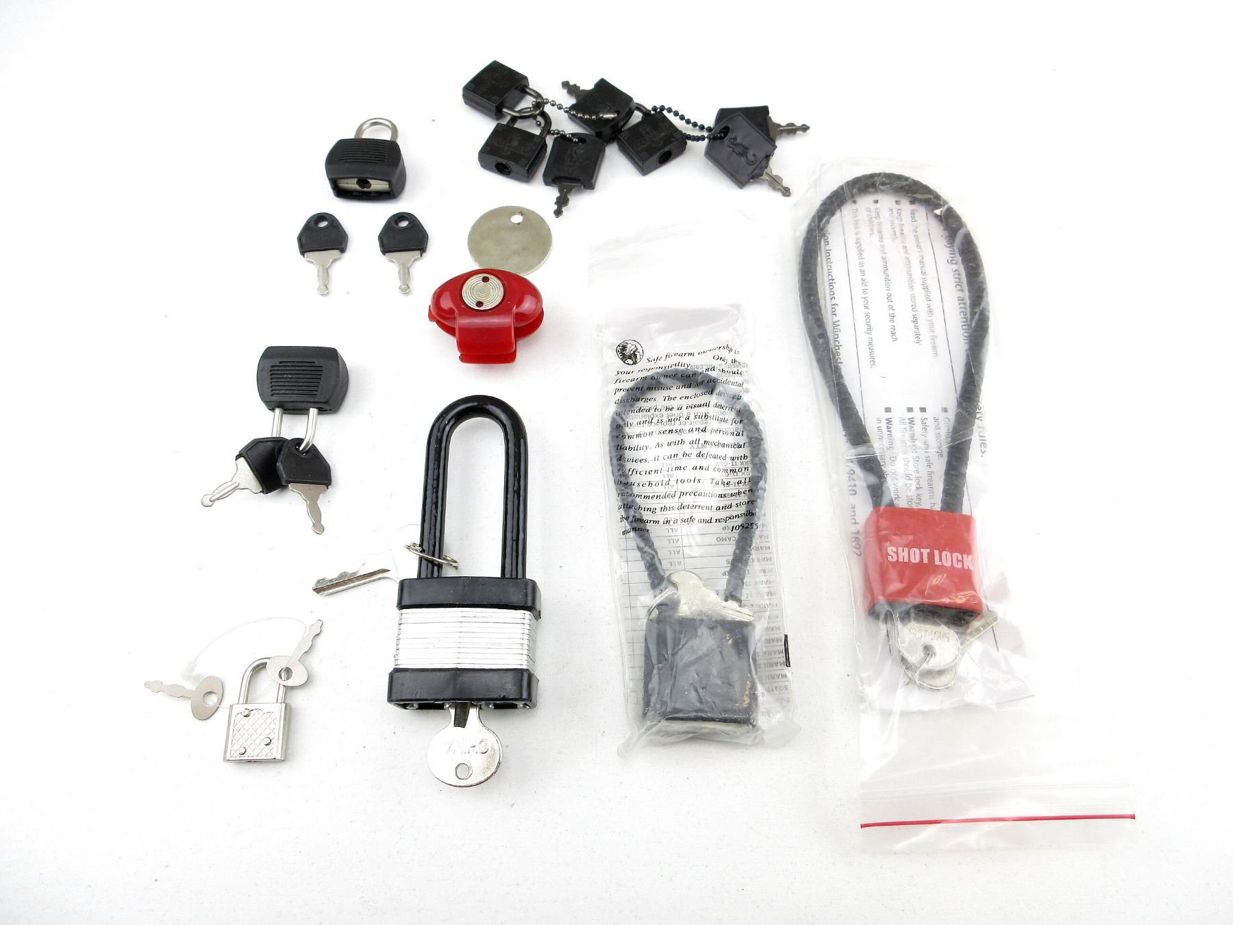 LOT INCLUDES; APPROX. (10) KEYED LOCKS WITH KEYS, VARIOUS COLOURS. SEE PHOTOS.