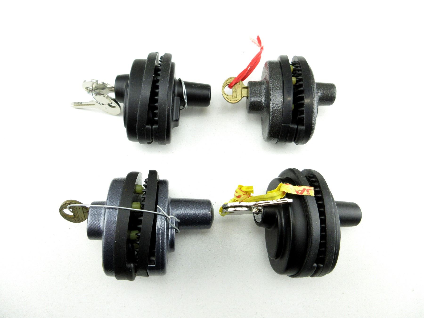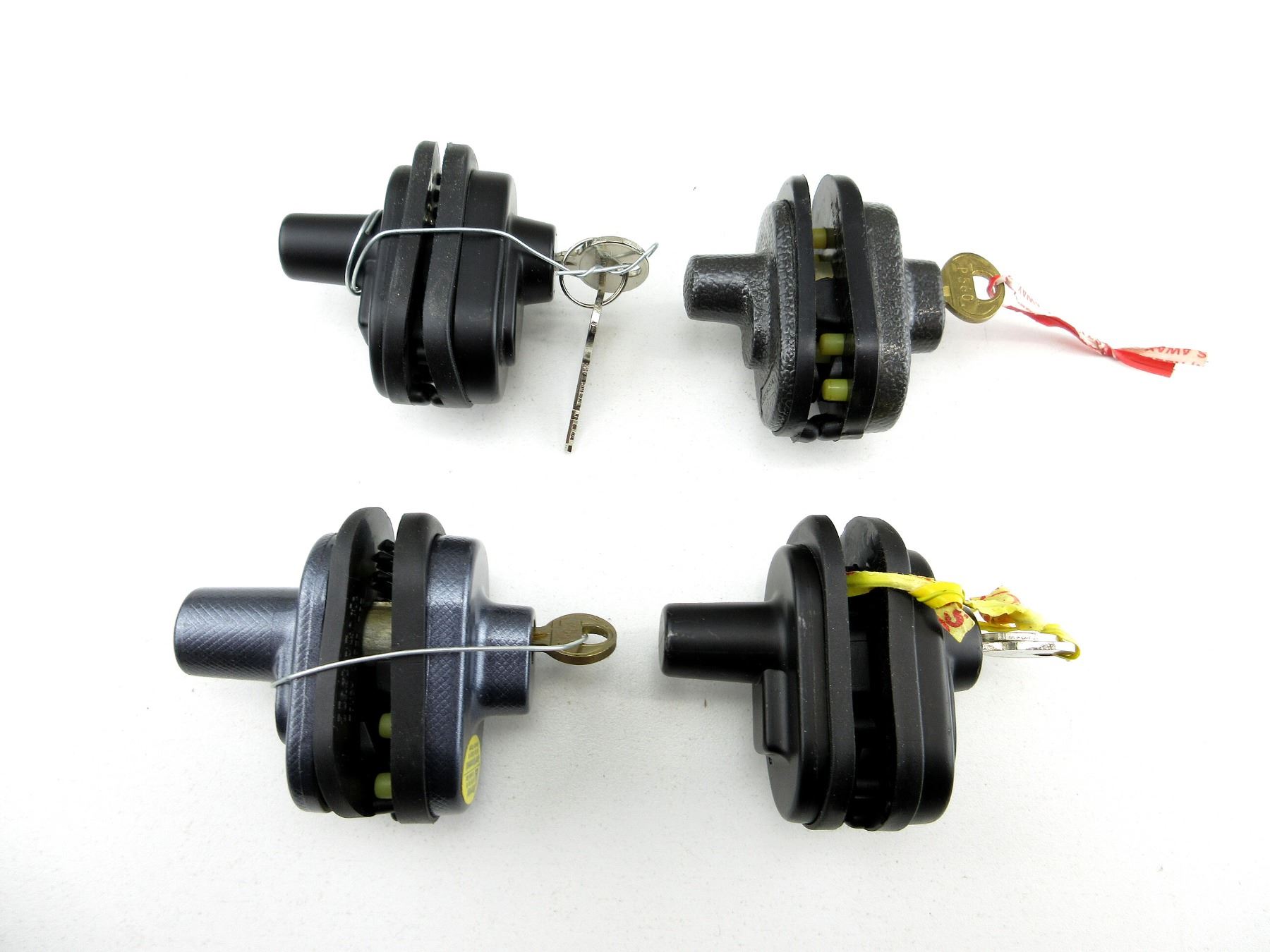 LOT INCLUDES; (4) ASSORTED KEYED TRIGGER LOCKS WITH KEYS, MARKED: "MASTER", "FRANZEN", ETC. SEE PHOTOS.