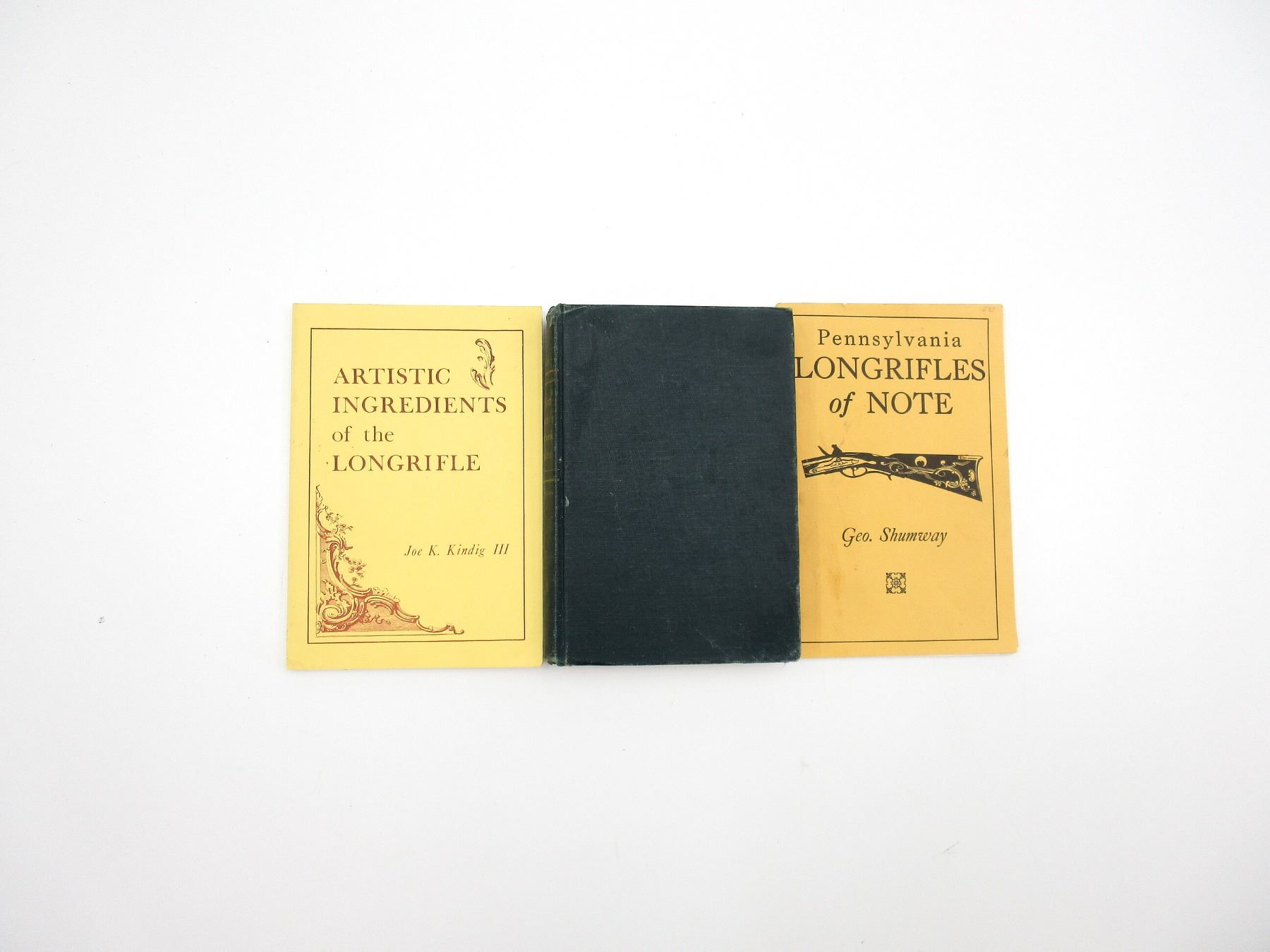 LOT INCLUDES; (1) "PENNSYLVANIA LONG RIFLES OF NOTE" BOOK BY GEO. SHUMWAY, SOFT COVER, ISBN: 0-87387-077-8, (1) "ARTISTIC INGREDIENTS OF THE LONG RIFLE" BOOK BY JOE K. KINDIG III, SOFT COVER, ISBN: 0-87387-103-0 & (1) "THE GUN COLLECTOR'S HANDBOOK OF VALUES FIRST REVISED EDITION" BOOK BY CHARLES EDWARD CHAPEL, HARD COVER, COPYRIGHT 1947. SEE PHOTOS.