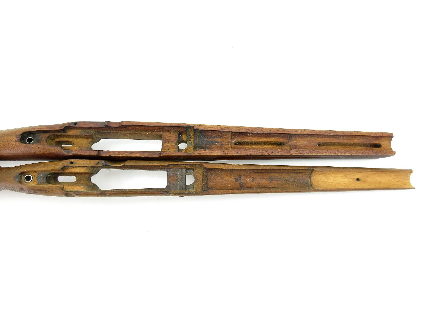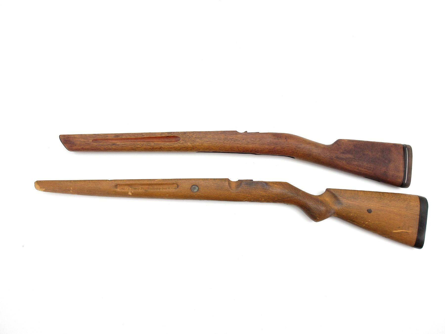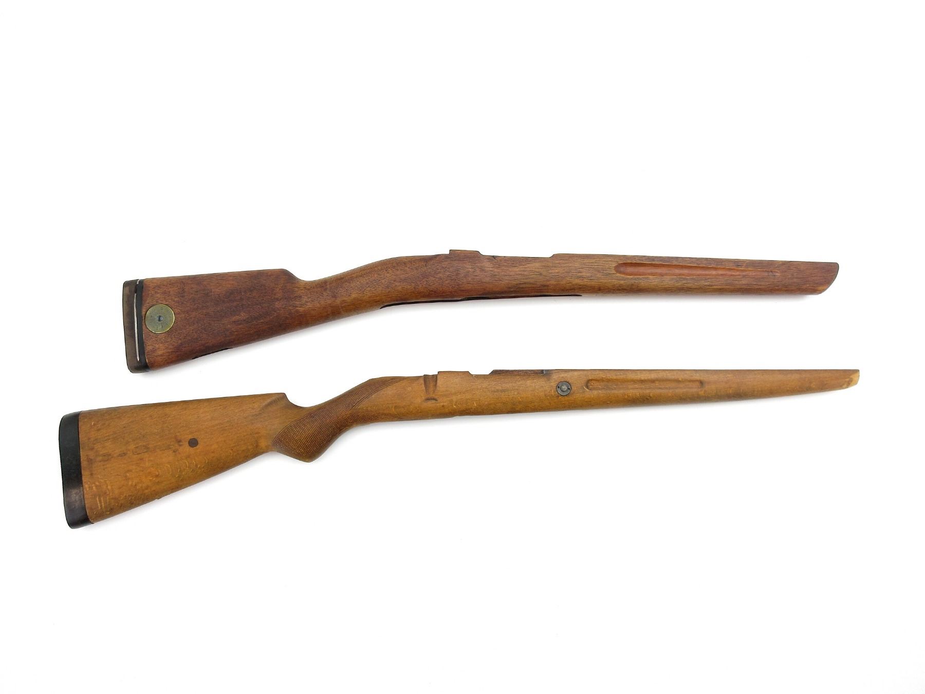 LOT INCLUDES; (1) SPORTERIZED SWEDISH 96 MAUSER WOOD STOCK, WITH BRASS MEDALLION & RUBBER RECOIL BUTT PAD, OAL APPROX. 29 1/8" & (1) SPORTERIZED MAUSER 98 WOOD STOCK, VARIOUS PROOF MARKS, METAL BUTT PLATE, OAL APPROX. 32". MAY REQUIRE FITTING. SEE PHOTOS.