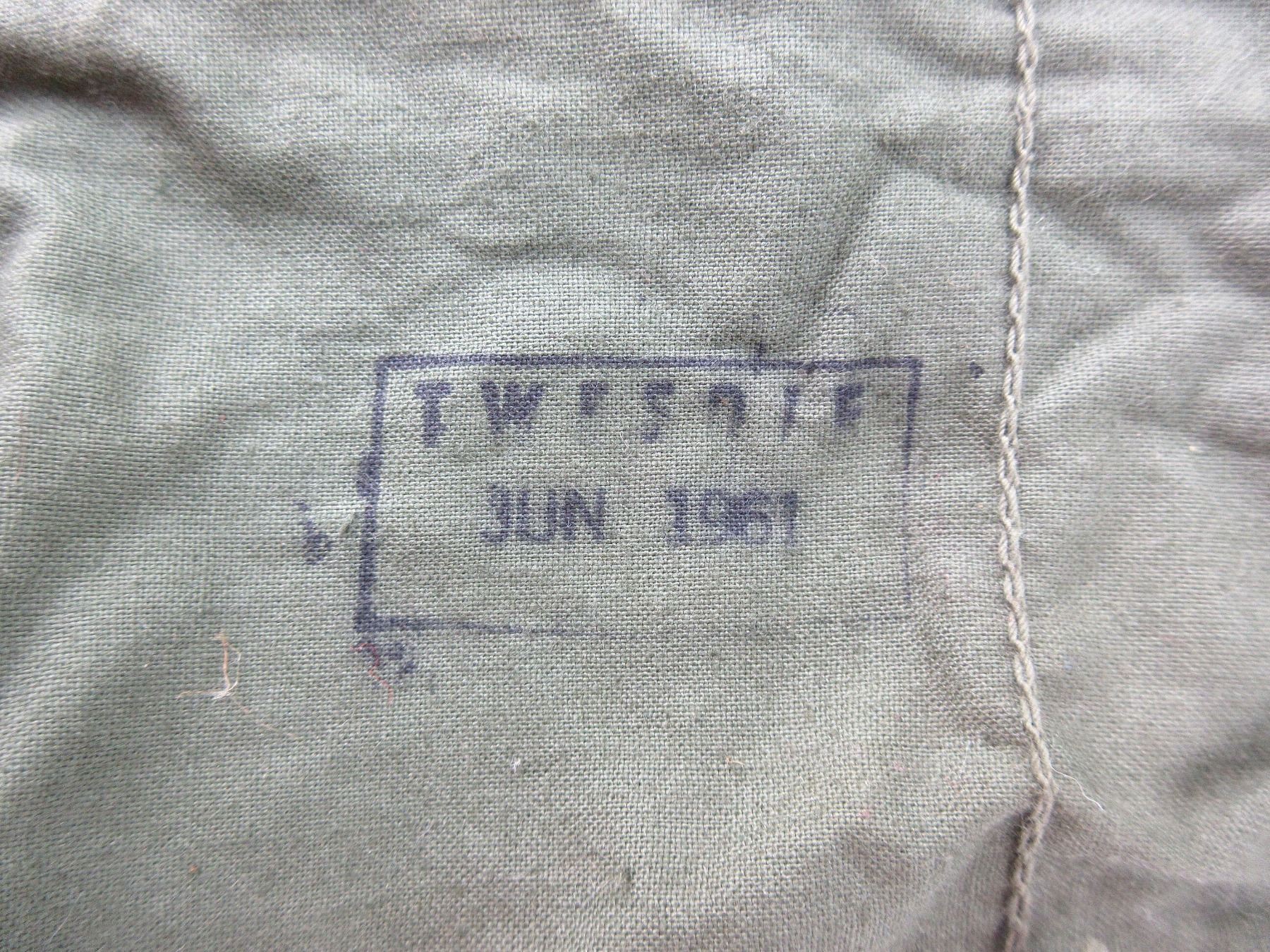 LOT INCLUDES; (1) 1950'S CANADIAN MILITARY GREEN CANVAS UTILITY POUCH, MARKED: "1953, 4", MAPLE LEAF PROOF MARK & VARIOUS OTHER PROOF MARKS, WITH GREEN CANVAS STRAP WITH MAPLE LEAF PROOF MARK & VARIOUS OTHER MARKINGS, (1) 1950'S U.S. MILITARY .30 M1 CARBINE BANDOLIER, GREEN CANVAS 6-POCKET BANDOLIER, MARKED: "CAL. 30 CARBINE, BALL MI, 10 RD CIPS, RA5965" & "NOV. PROD, SEP 53", (1) 1960'S U.S. MILITARY 7.62N BANDOLIER, GREEN CANVAS 6-POCKET BANDOLIER, MARKED: "NATO 7.62MM, BALL M80, 5 RD CLIPS, WRA 22183" & "TW?SDIE, JUN 1961", (1) U.S. MILITARY TAN CANVAS CANTEEN COVER, MARKED: "U.S.", (1) U.S. MILITARY BAG OF RATIONS / MRES, CONTAINS APPLESAUCE, BEEF FRANKFURTERS, CRACKERS, ETC., (1) UNKNOWN MILITARY GREEN PAINTED METAL CANTEEN / MESS TIN, NO VISIBLE MARKINGS, ETC. SEE PHOTOS.