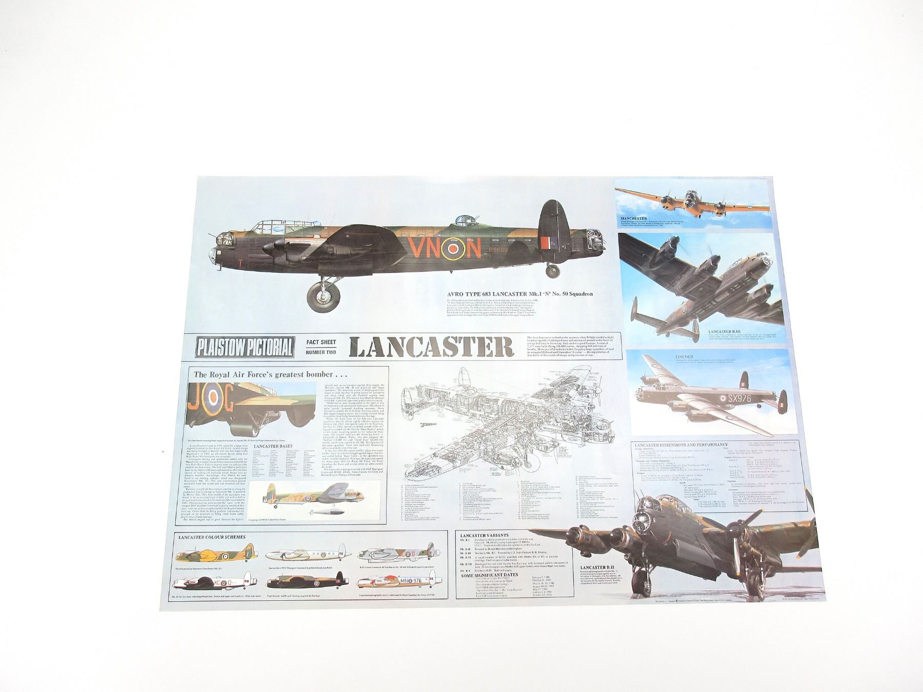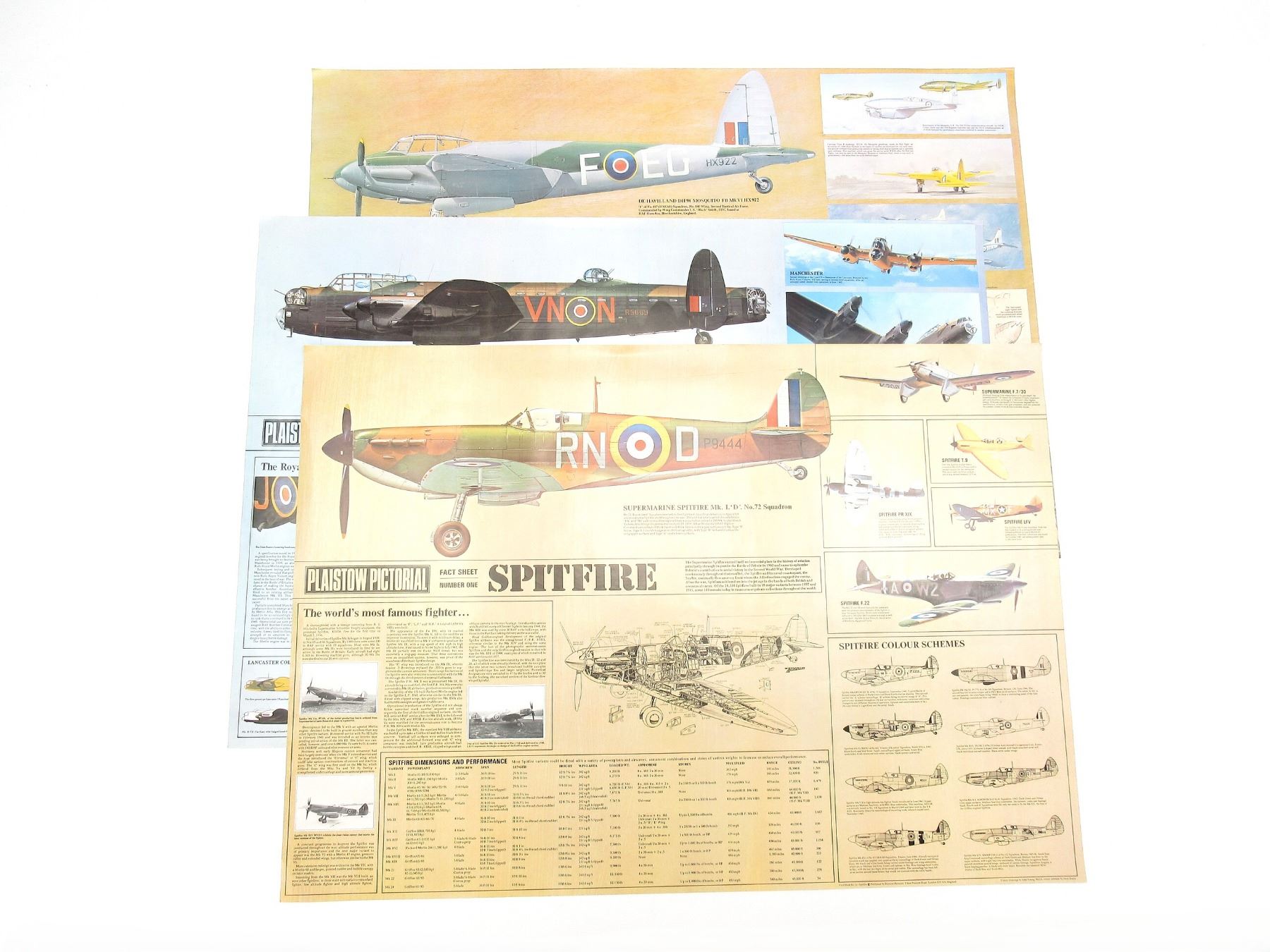 LOT INCLUDES; (3) POSTERS OF VARIOUS SPITFIRE / LANCASTER / MOSQUITO AIRCRAFTS WITH FACTS / INFORMATION, WRITING & ILLUSTRATIONS BY JOHN YOUNG, PUBLISHED BY PLAISTOW PICTORIAL, LONDON, ENGLAND & APPROX. 35" X 24.75". SEE PHOTOS.