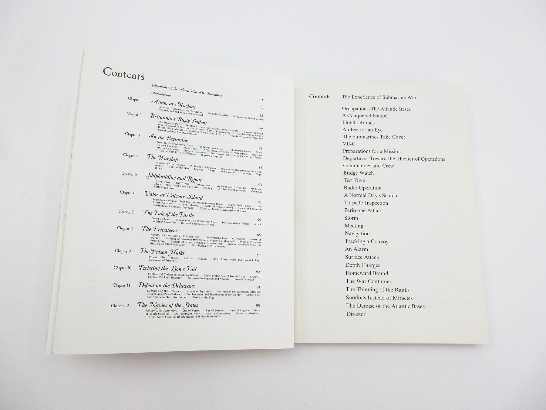LOT INCLUDES; (1) "BATTLESHIP THE SINKING OF THE PRINCE OF WALES AND THE REPULSE" BOOK BY MARTIN MIDDLEBROOK AND PARTICK MAHONEY, HARD COVER, COPYRIGHT 1977, (1) "U-BOAT WAR" BOOK BY LOTHAR-GUNTHER BUCHHEIM, SOFT COVER, ISBN: 055301062X, (1) "SHIPS AND SEAMEN OF THE AMERICAN REVOLUTION" BOOK BY JACK COGGINS, SOFT COVER, ISBN: 0486420728, (1) "HAIDA" BOOK BY WILLIAM SCLATER, HARD COVER, COPYRIGHT 1965, (1) "FIGHTING SAIL ON LAKE HURON AND GEORGIAN BAY THE WAR OF 1812 AND ITS AFTERMATH" BOOK BY BARRY GOUGH, HARD COVER WITH DUST COVER, ISBN: 1550681141 & (1) "WARSHIPS OF THE GREAT LAKES 1754-1834" BOOK BY ROBERT MALCOMSON, HARD COVER WITH DUST COVER, ISBN: 1840675357. SEE PHOTOS.