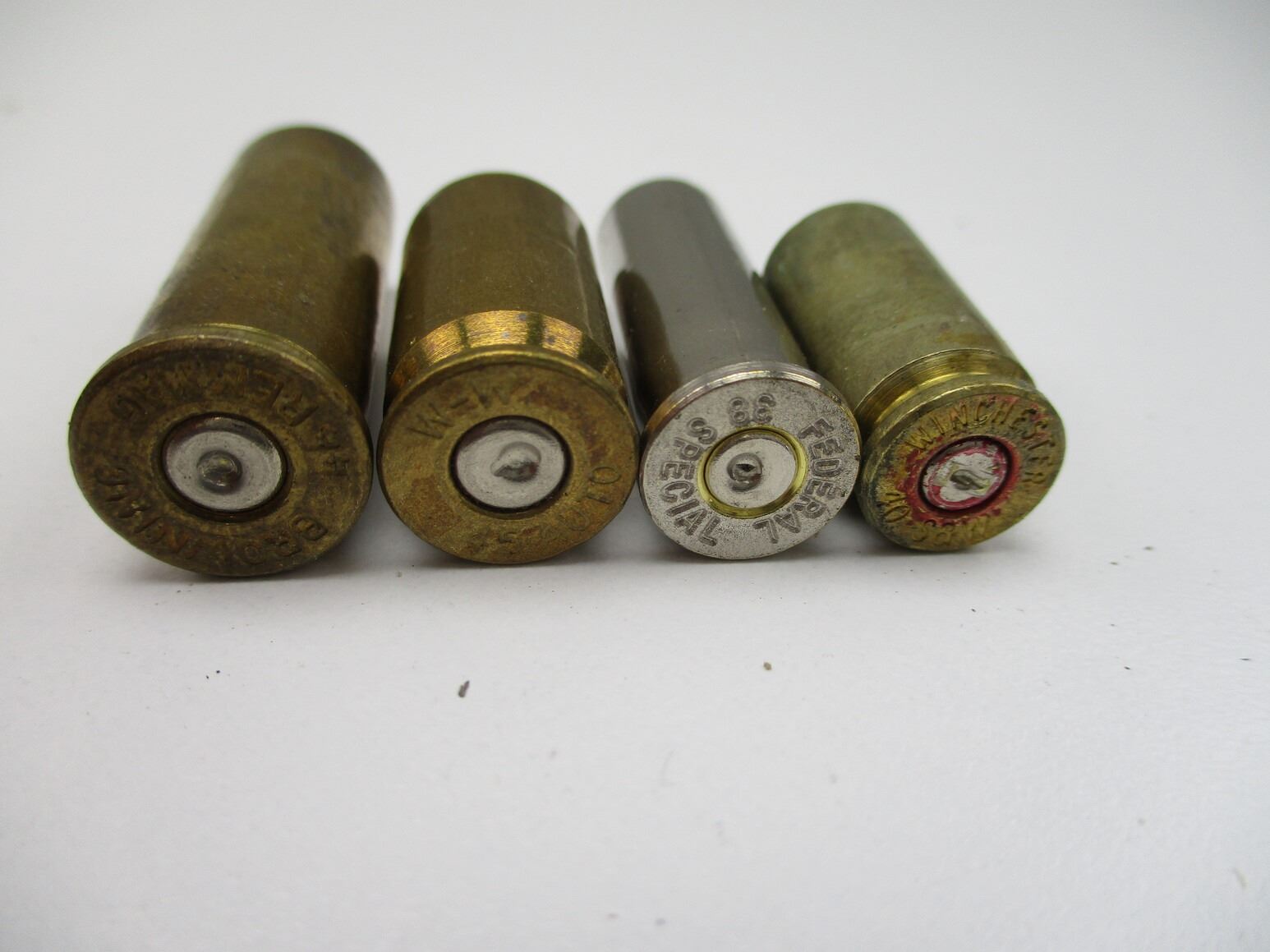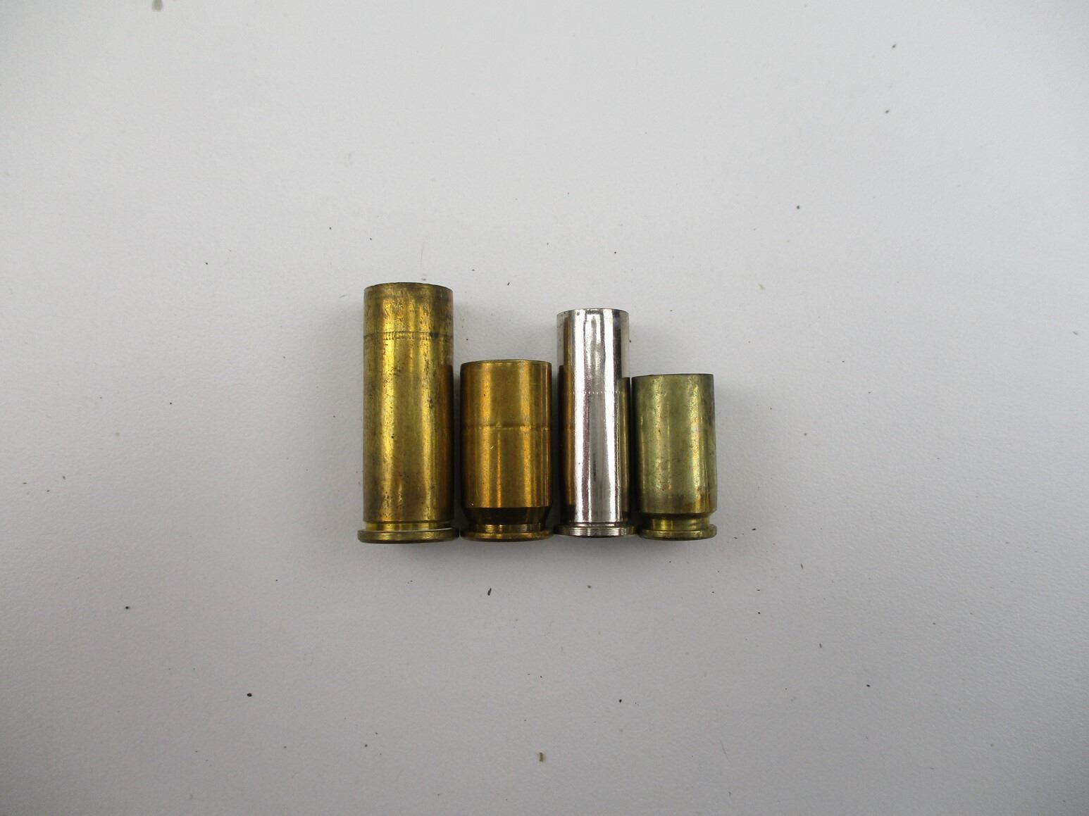 ASSORTED NON PRIMED PISTOL BRASS/NICKEL CASES , INCLUDES 38 SPECIAL, 40 S+W, 45 S+W, 45 AUTO, 44 REM MAG, 45 ACP (MILITARY). MAY CONTAIN OTHER CALIBERS. APPROXIMATELY 9.33 LBS.
