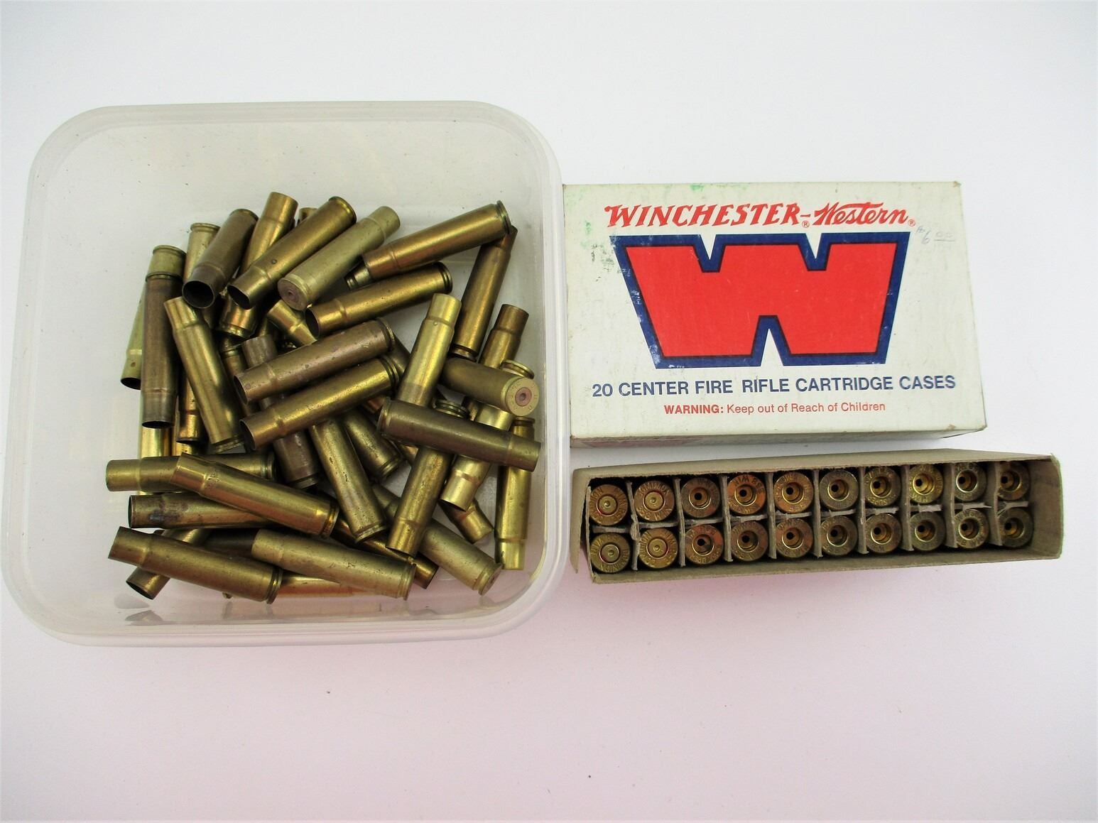 ASSORTED PRIMED/NON PRIMED RIFLE BRASS CASES , 65 RNDS. INCLUDES: (29) .35 PRIMED BRASS CASES, VARIOUS MFG'S INCLUDING DC CO., DOMINION, SUPER-X, ETC.,(36) .35 NON-PRIMED BRASS CASES, VARIOUS MFG'S INCLUDING DOMINION, REM-UMC, WRA CO., ETC , THERE ARE NEW SHIPPING RESTRICTIONS, PLEASE MAKE SURE YOU HAVE READ AND CONFIRMED WE CAN SHIP TO YOU BEFORE BIDDING ON THIS LOT. PLEASE SEE LOT 0 IN THIS SESSION. NO REFUNDS WILL BE ISSUED, OR BIDS RETRACTED.