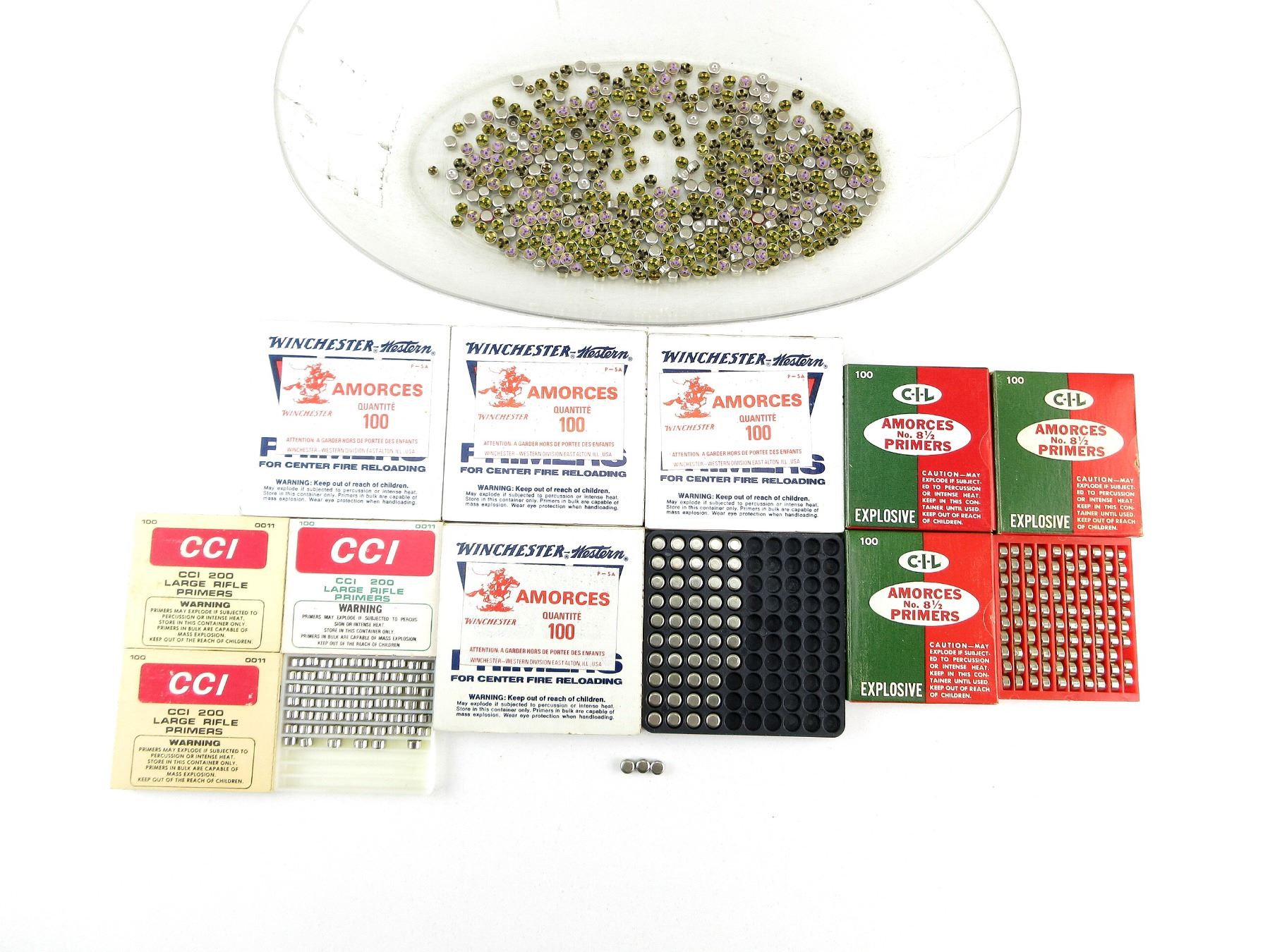 LOT INCLUDES; APPROX. (1273) PRIMERS, VARIOUS MANUFACTURERS INCLUDING; CCI NO. 200 LARGE RIFLE, CIL NO. 8 1/2, WINCHESTER NO. 8 1.2 LARGE RIFLE PRIMERS, ETC.