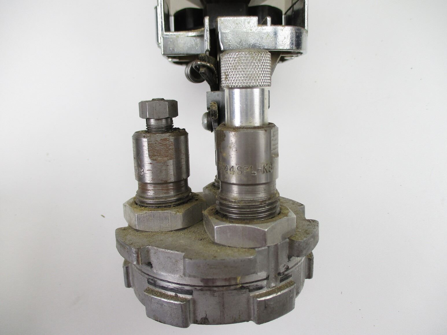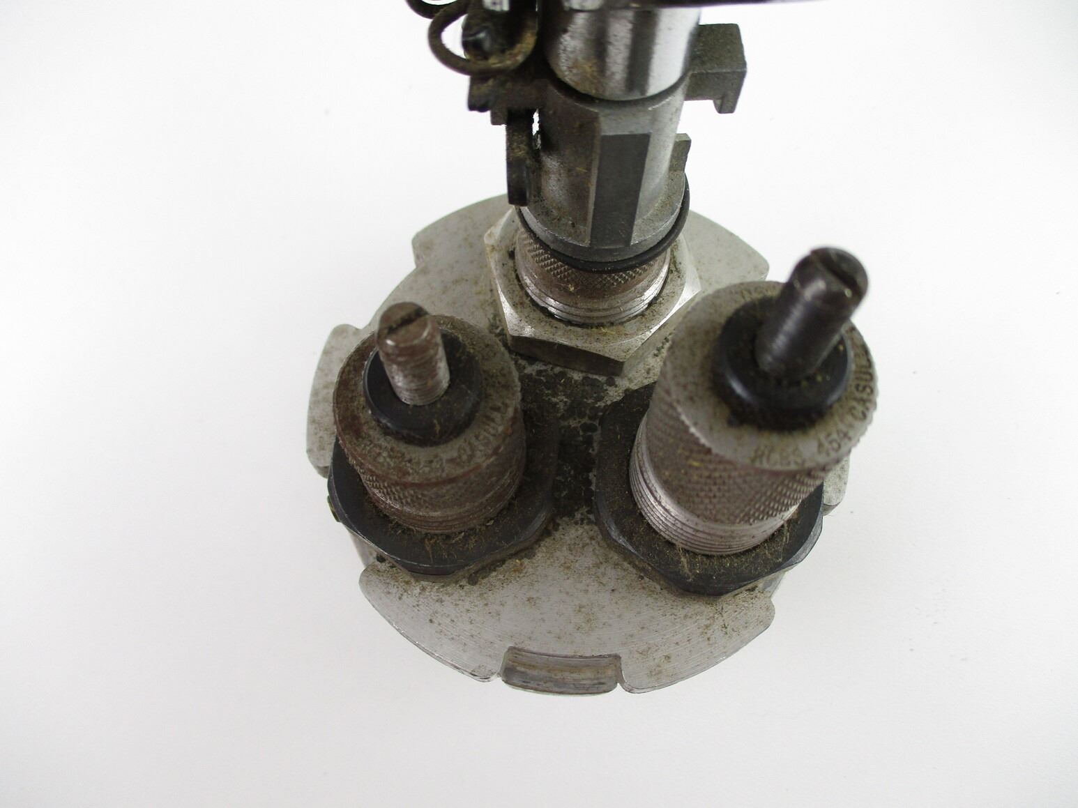 ASSORTED RELOADING LOT , LOT INCLUDES: (3) LEE POWDER MEASURES, .454, .45 ACP & .44 SPL DIES. SOME CORROSION. SEE PHOTO.