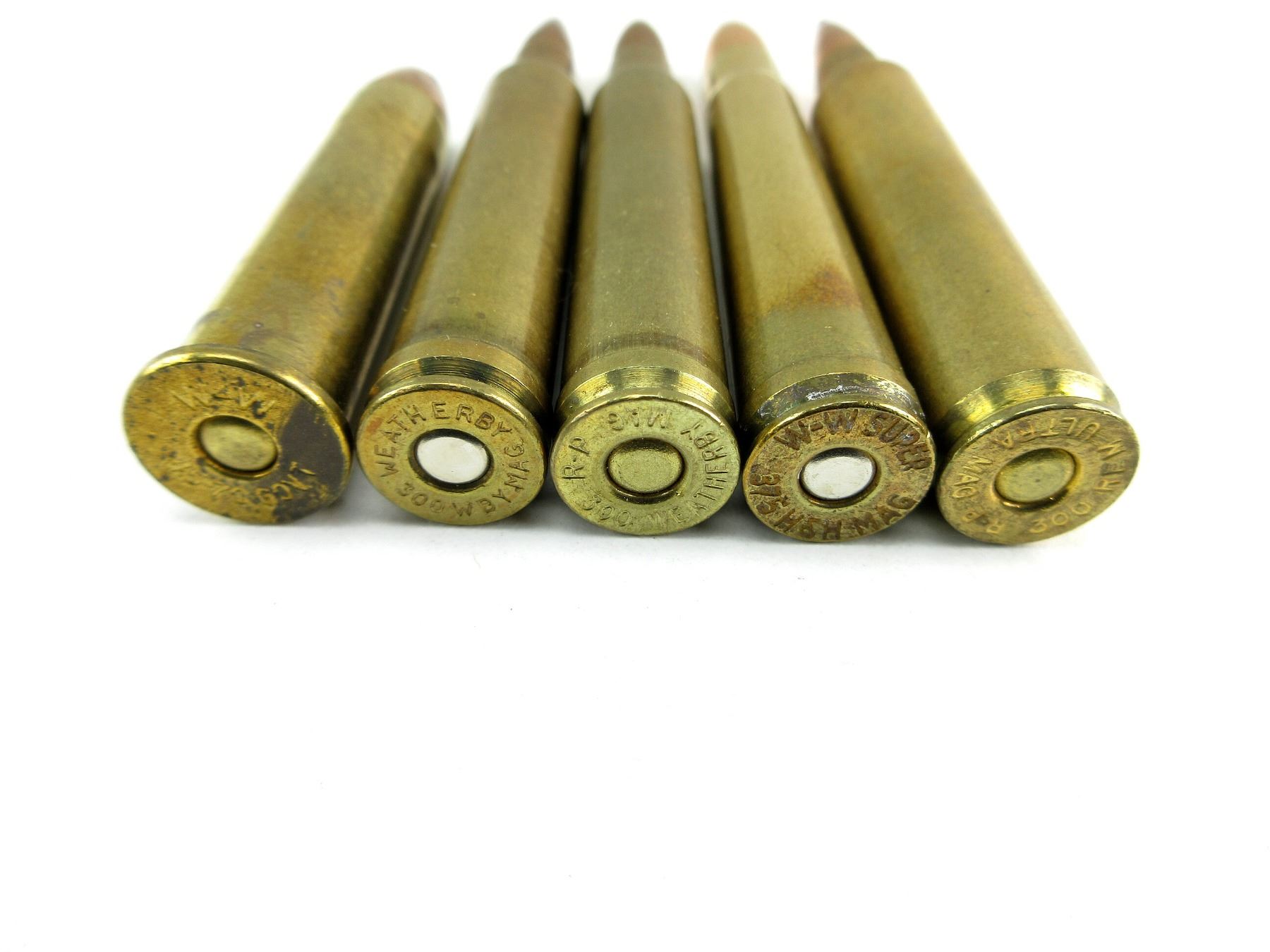 LOT INCLUDES; APPROX. (42) RNDS, VARIOUS MANUFACTURERS, ASSORTED CALIBERS INCLUDING; .300 WEATHERBY MAG, .300 REM ULTRA MAG, .375 H&H MAG, .45-70 GOVT, ETC., (31) NON-PRIMED BRASS CASES.