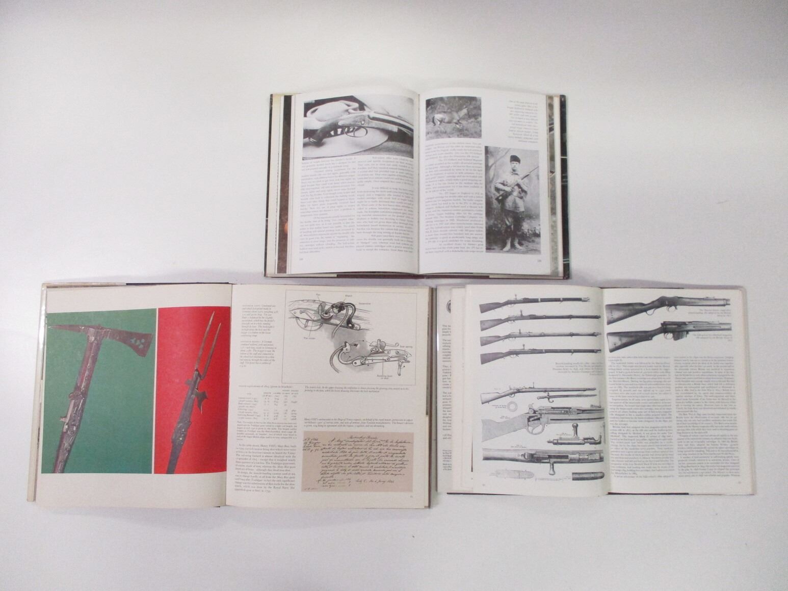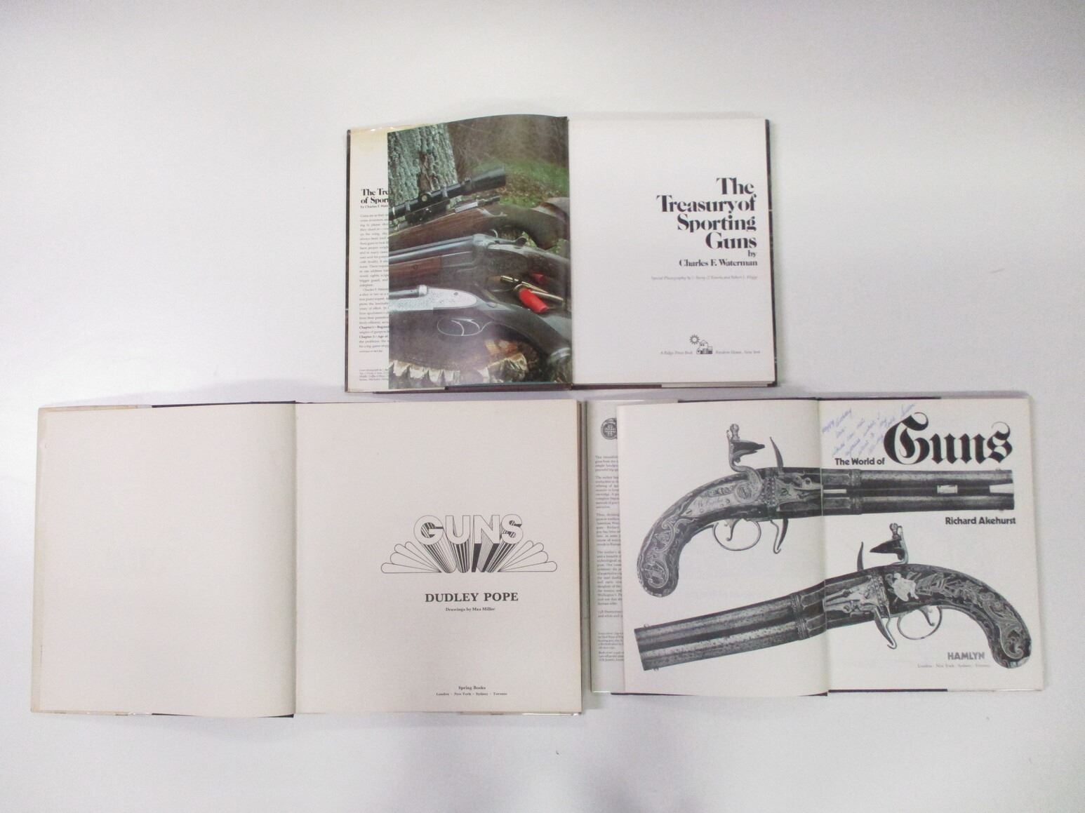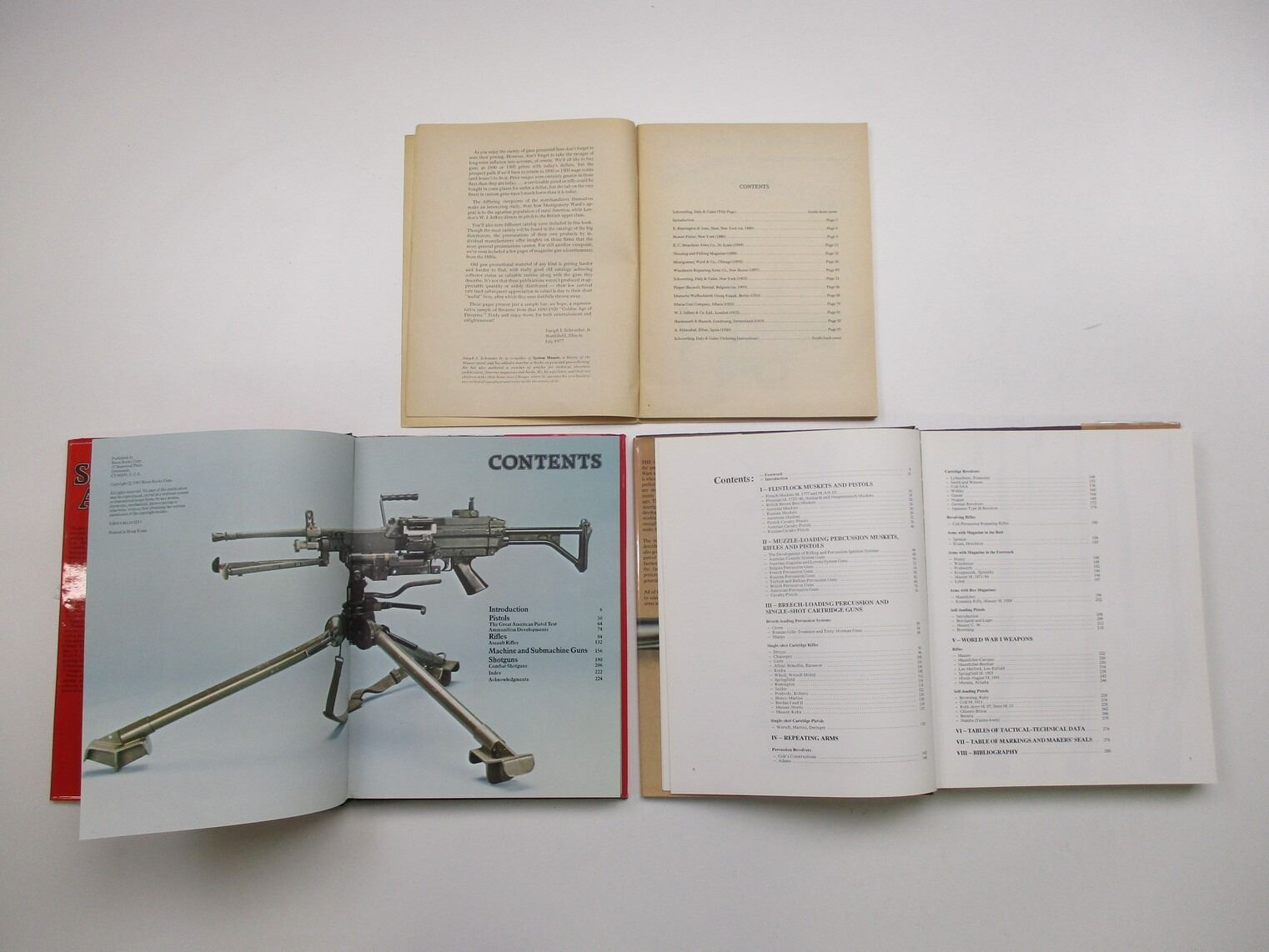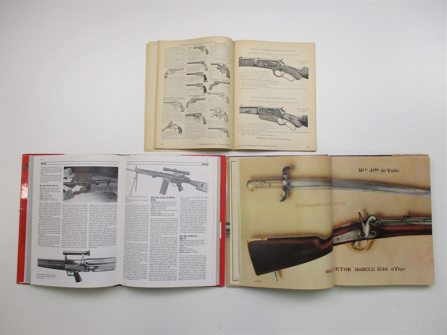 ASSORTED RIFLE BOOKS LOT, LOT OF 5. LOT INCLUDES: (1) "THE WORLD OF GUNS" RICHARD AKEHURST, HARD COVER, ISBN: 0-600-39236-8, (1) "MODERN SMALL ARMS" BY IAN V. HOGG, HARD COVER, ISBN: 0-86124-123-1, (1) "GREAT CENTURY OF GUNS" BY BRANKO BOGDANOVIC AND IVAN VALENCAK, HARD COVER, ISBN: 0-8317-4070-1, (1) "RARE SELECTIONS FROM OLD GUN CATALOGS 1880-1920" EDITED BY JOSEPH J. SCHROEDER, SOFT COVER, (1) "GUNS" BY DUPLEY POPE, HARD COVER, & (1) "THE TREASURY OF SPORTING GUNS" BY CHARLES F. WATERMAN, HARD COVER, ISBN: 0-394-50535-2. SEE PHOTOS.